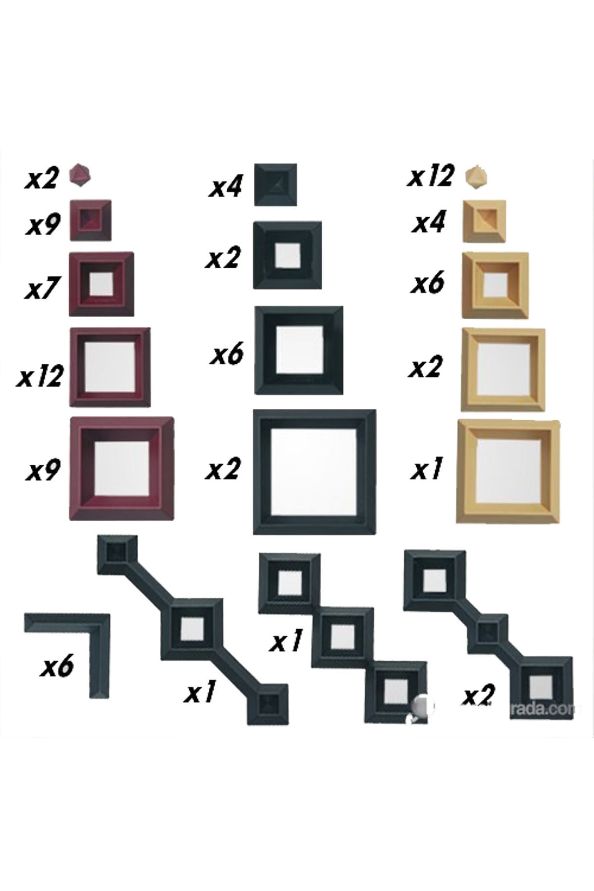 شامل ۱ قالب با ۶ طرح، یک نوار رنگ، ۶ آهنربا، ۲ سنجاق، ۱ قلمموی نقاشی، گچ ظریف، اکلیل و