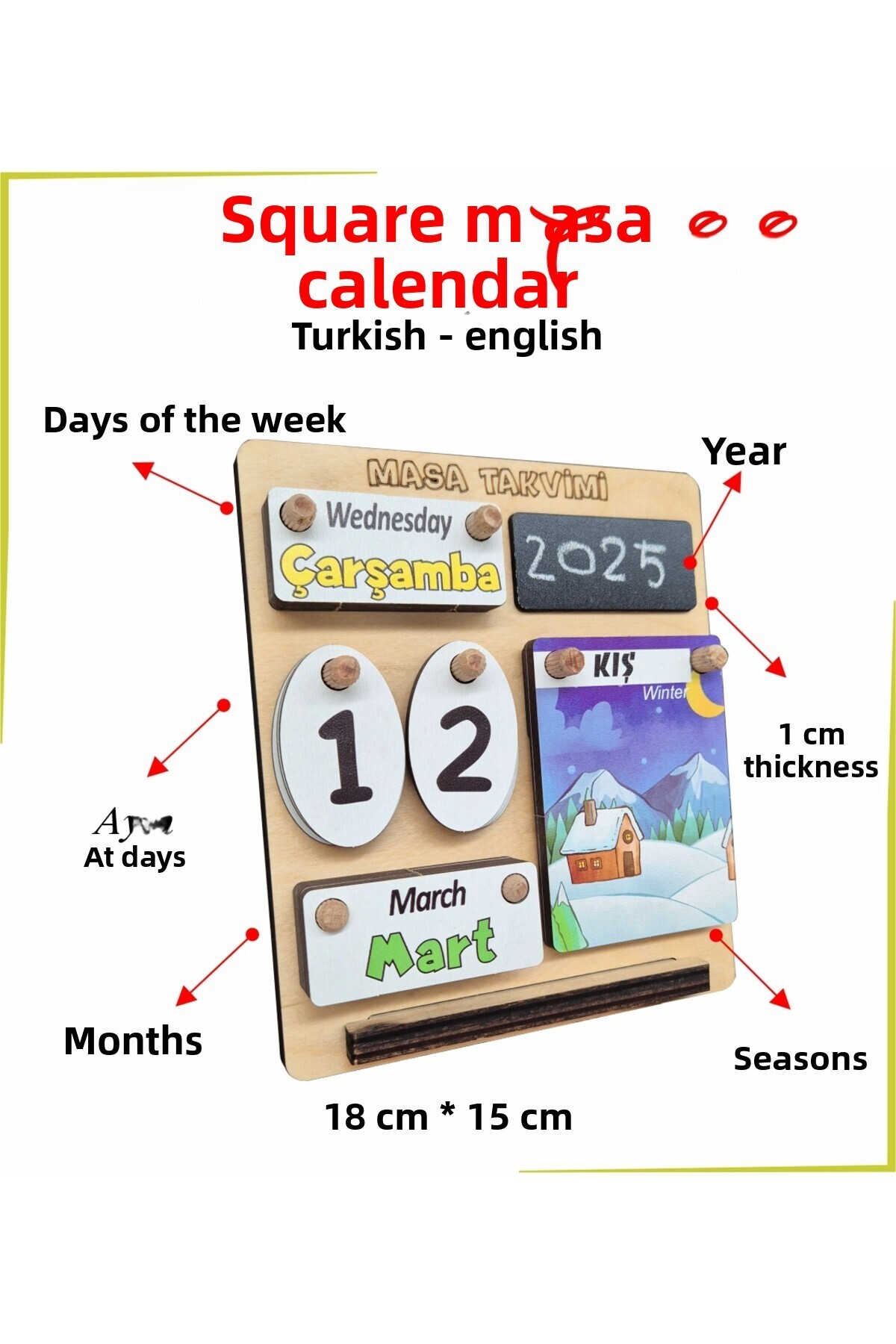 میتواند روی میز بهخوبی ثابت بماند. محتوای انگلیسی و ترکیهای در دسترس است. میتوانید روزهای هفته، ماهها و فصول را