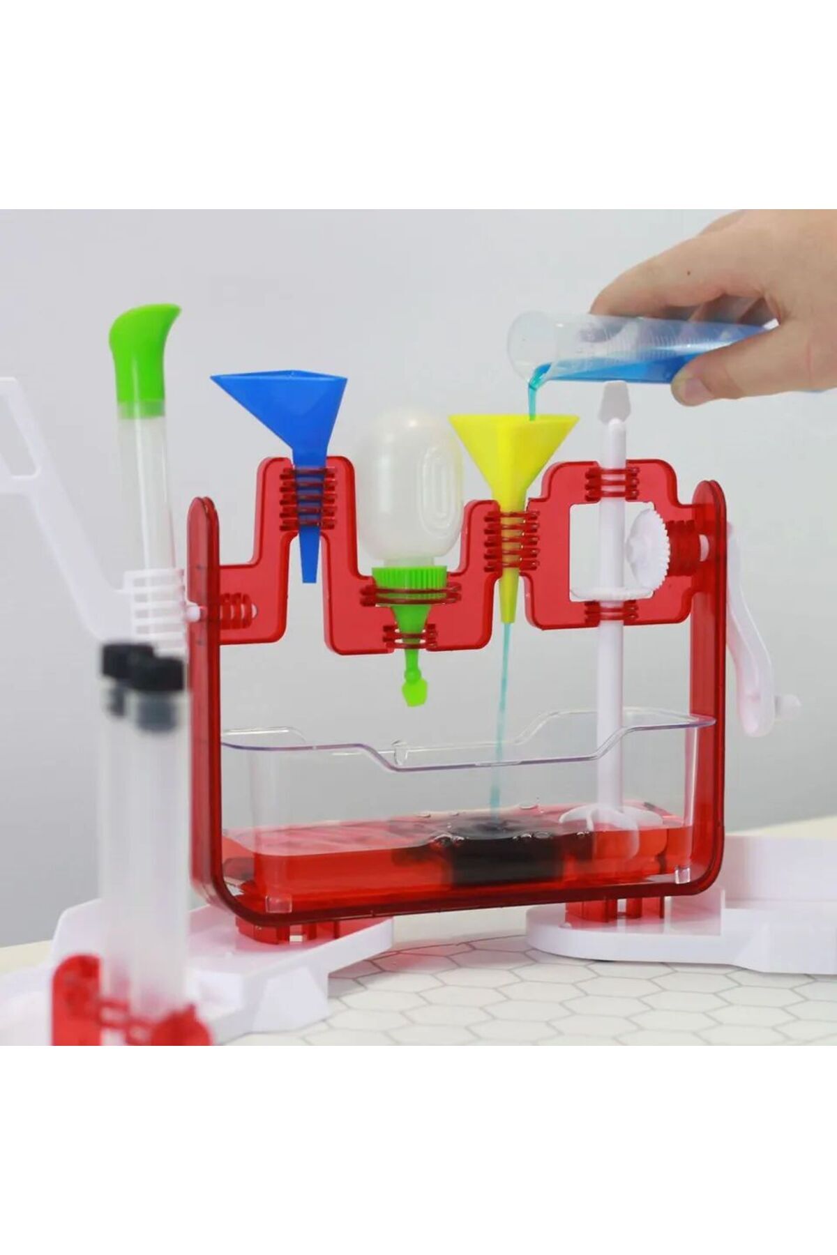 با این آزمایشگاه چندمنظوره تبدیل به یک شیمیدان جوان شوید: همزن، قیف، قطرهچکان، ریزنده، زیرانداز محافظ و موارد دیگر. ۲۰۰