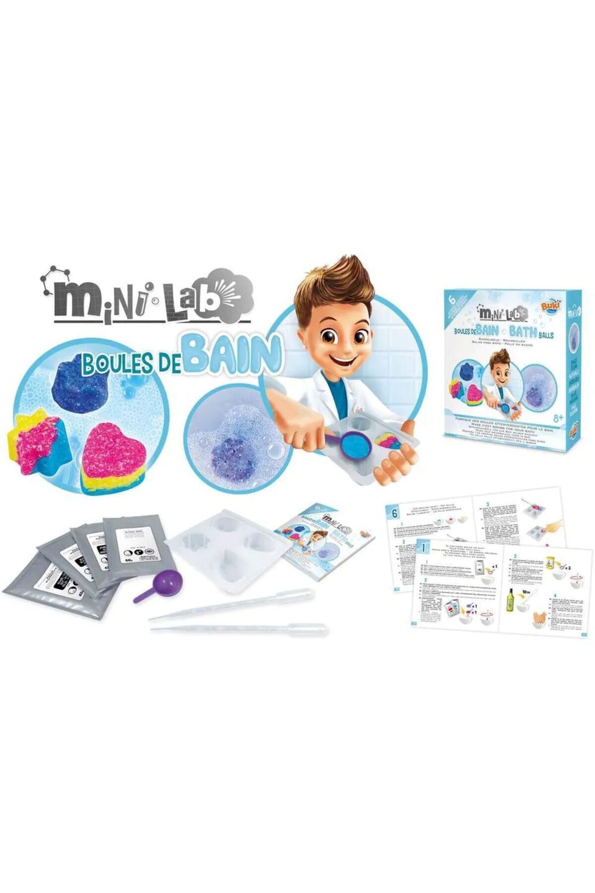 یک کیت برای ساخت توپهای حمام رنگارنگ. در آب، این توپها حباب ایجاد میکنند و به حمام شما رنگ میبخشند.