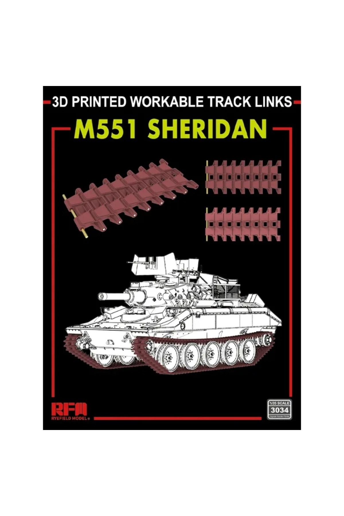 لوازم جانبی ارتقاء رایفیلد RM-3034 مقیاس ۱/۳۵ M51 شریدان، پیوندهای زنجیر قابل کار (چاپ سهبعدی) برای…