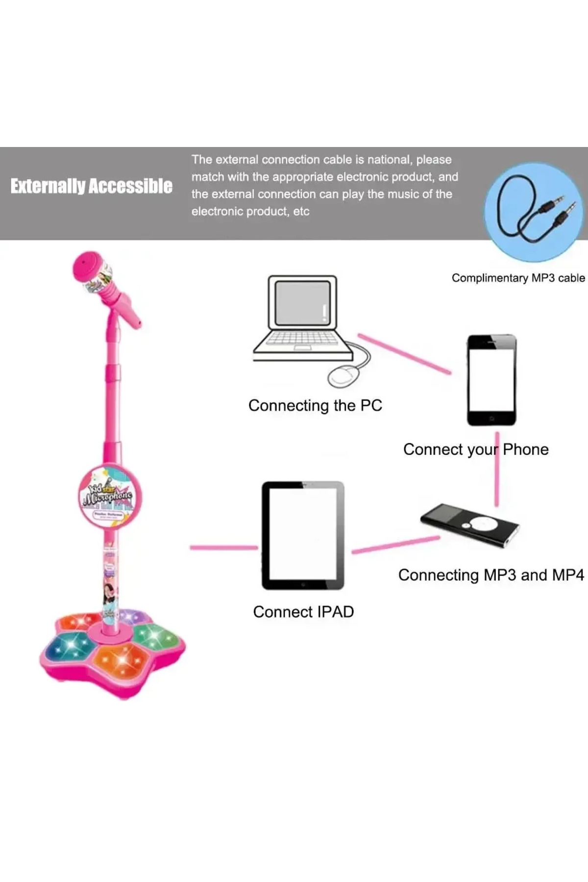 بازی میکروفون استند صورتی بچگانه، کارائوکه الکترونیکی قابل حمل کودکان، میکروفون کارائوکه مهمانی بادوام