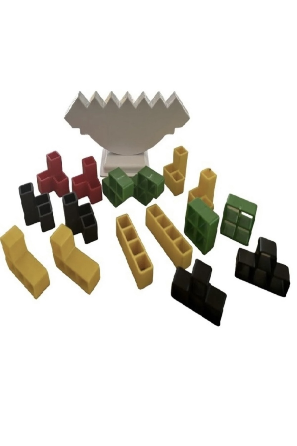 محتویات جعبه – تخته بازی چوبی به ابعاد ۲۹.۵ × ۲۹.۵ سانتیمتر، – ۱ تاس – مجموعاً ۱۶ مهره، شامل