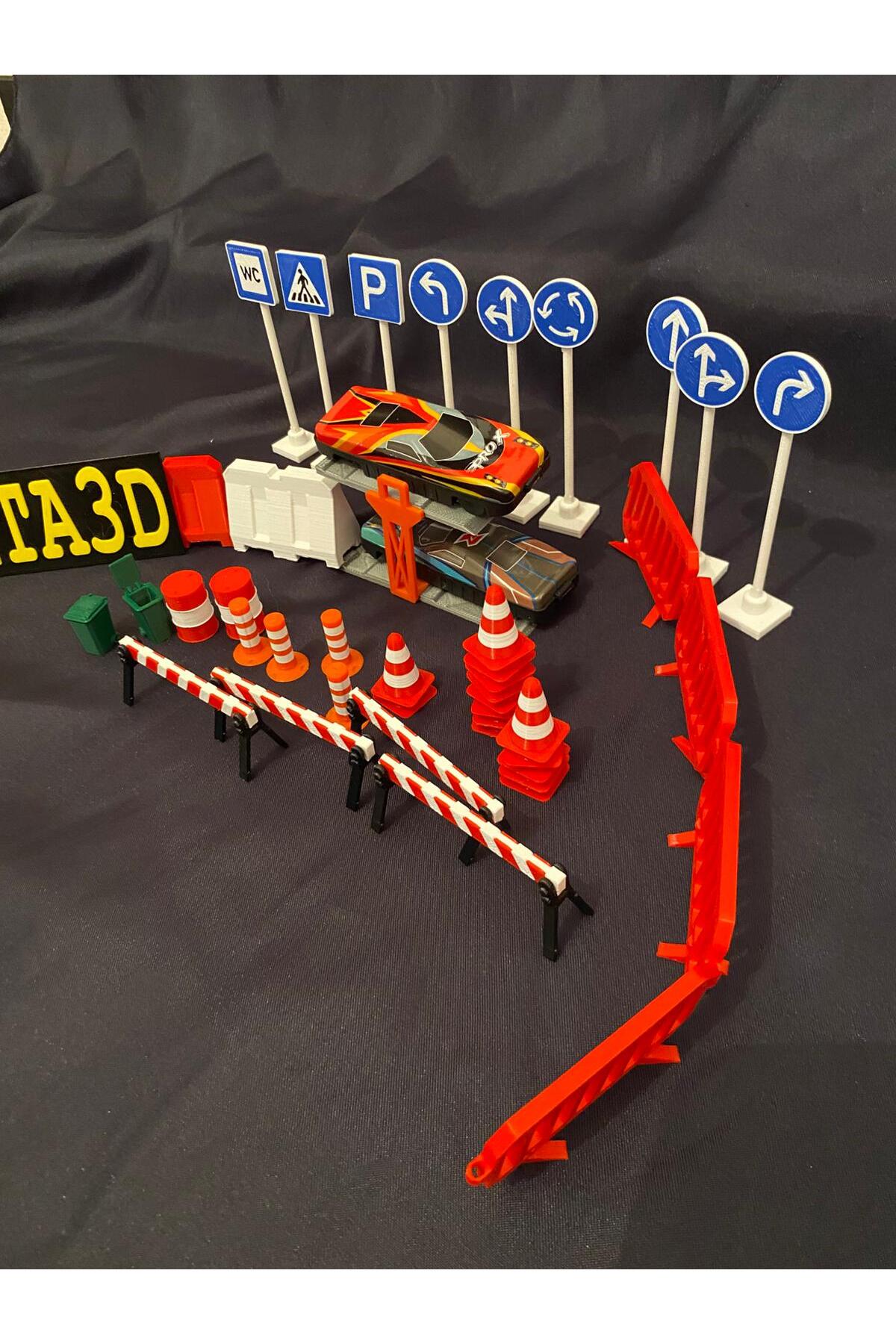 ست اسباببازی آموزشی علائم ترافیکی، مخروطها، تانک نفت و موانع جادهای به همراه خودروی غافلگیرکننده هدیه