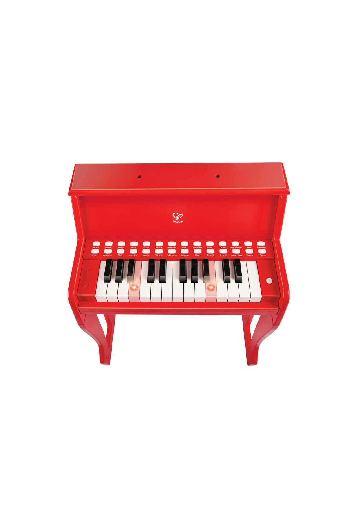 پیانوی موزیکال برقی ۲۵ کلیدی با چراغ و چهارپایه – قرمز
