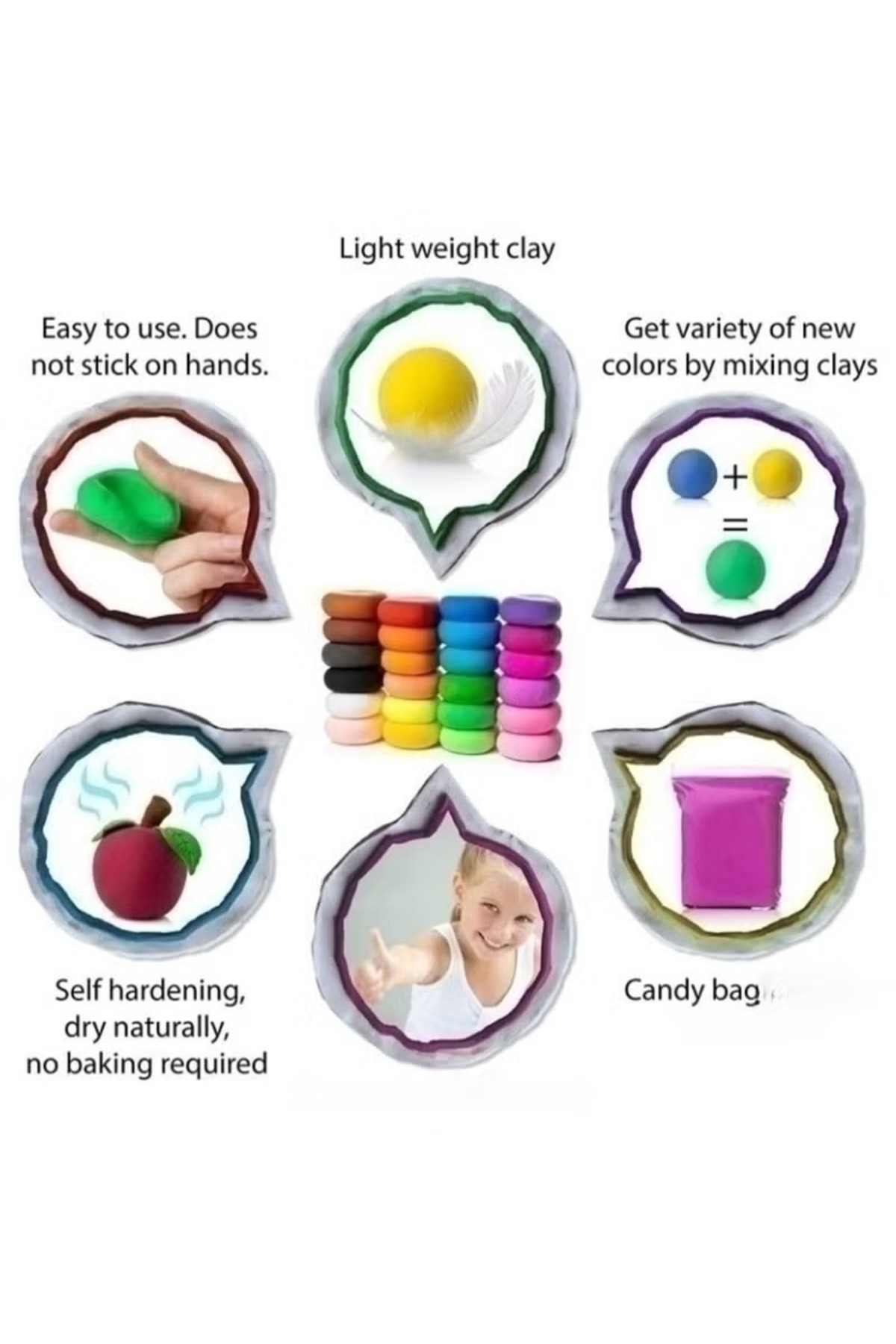 این مجموعه ۱۲ تکه گل رس رنگارنگ با خشکشوندگی هوایی برای هنرمندان نوپا و علاقهمندان به خلاقیت عالی است. این