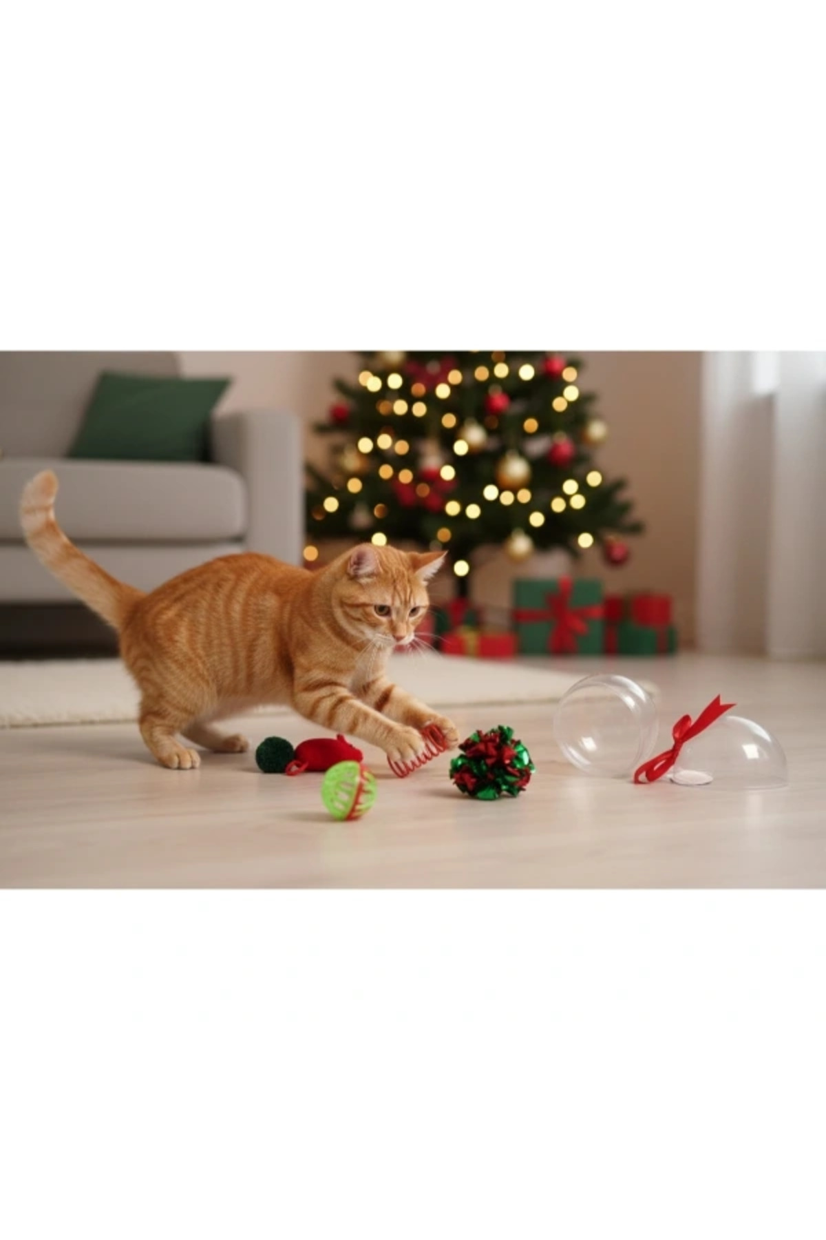 مجموعه اسباببازی ۸ تکه با مضمون سال نو در یک کره، با قطعات رنگارنگ و سرگرمکنندهاش که غریزه بازی گربهتان
