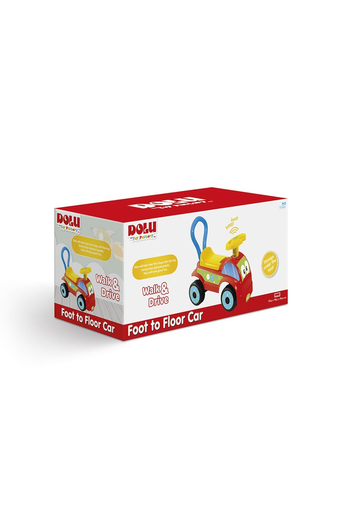 مناسب کودکان ۱۲ ماهه و بالاتر است. ابعاد آن ۳۷×۴۸×۲۱ سانتیمتر است. دارای شاخ و چمدان است. رنگ آن قرمز