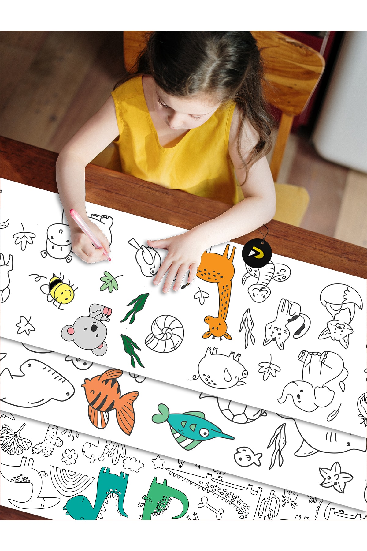 با مجموعه کاغذ رنگآمیزی غولپیکر آموزشی با تم حیوانات، فرزند شما بهسادگی و بهطور دائمی از طریق رنگآمیزی با حیوانات