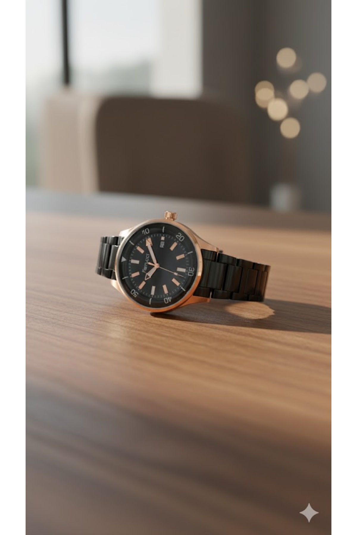 ساعت مچی مردانه مسی و مشکی، صفحه مشکی – بند فلزی شیک، ۲ سال گارانتی