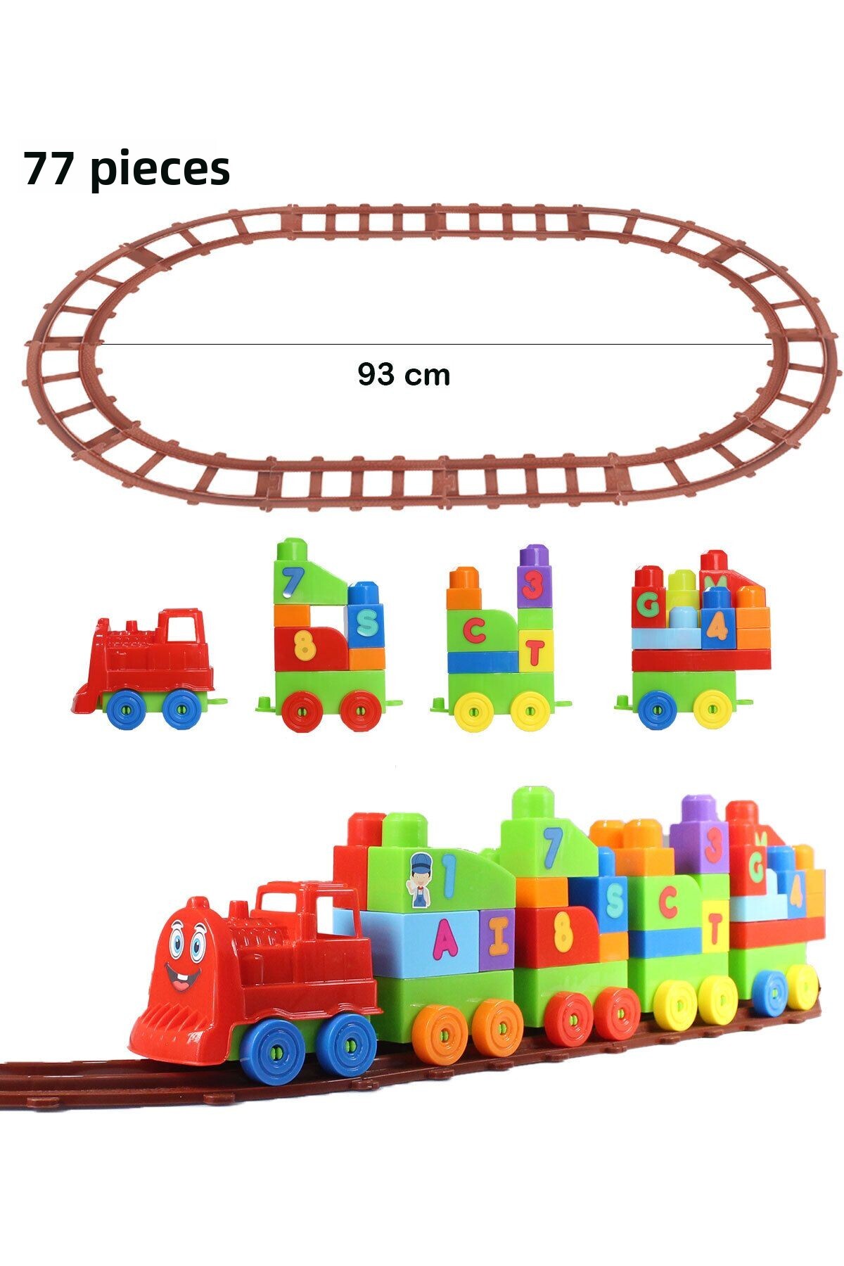 بازی بلوک، مجموعه قطار اسباببازی ۷۷ تکه، اعداد و حروف، رنگهای شاد، مجموعه مگا بلاک ۲۳۹۷