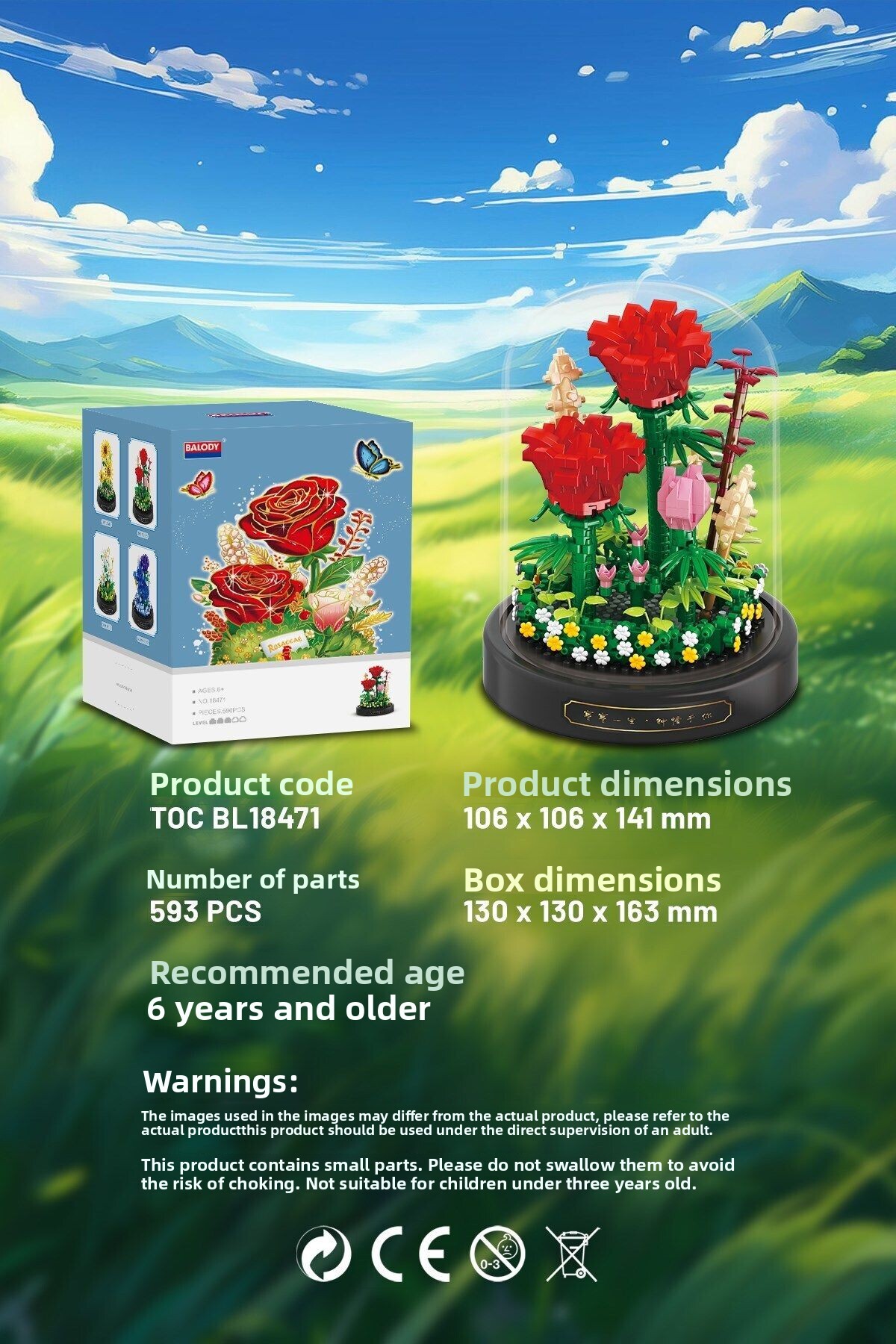 مجموعه گل با شیشه – رزهای قرمز (Bl18471) – ست اسباببازیهای مینی بلاک