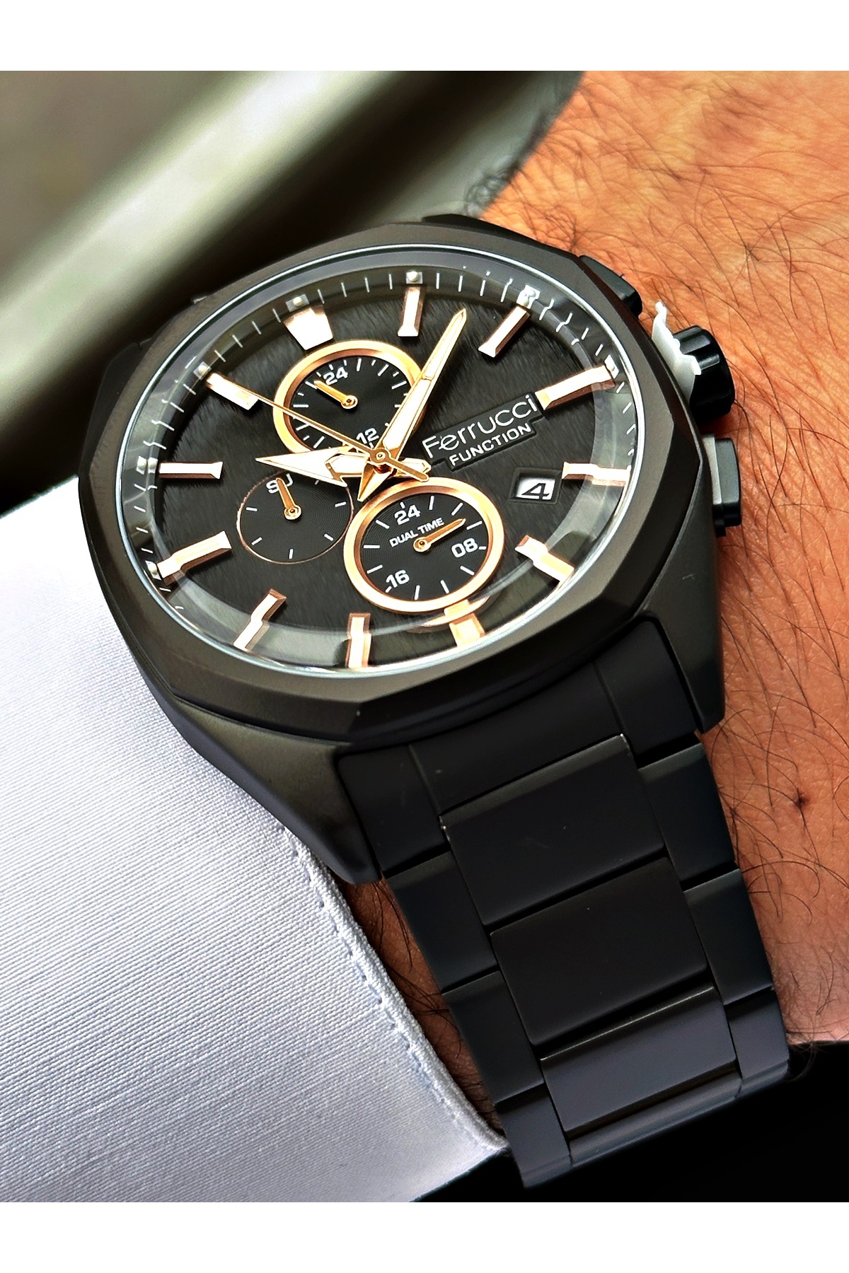 ساعت مچی مردانه بند فلزی با عملکرد زنگ و نور پسزمینه، رنگ مشکی + بند هدیه