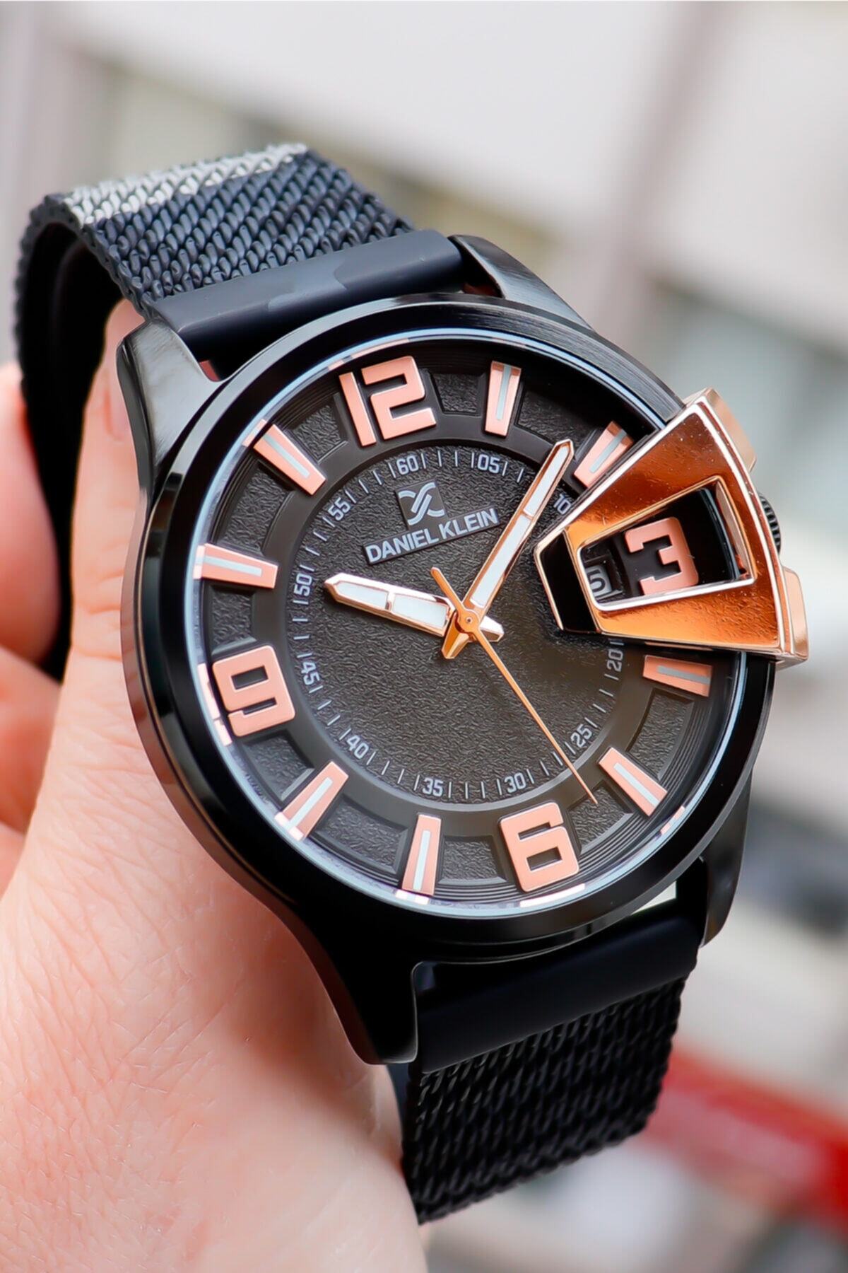 ساعت مچی مردانه بند فلزی با عملکرد زنگ و نور پسزمینه، رنگ مشکی + بند هدیه