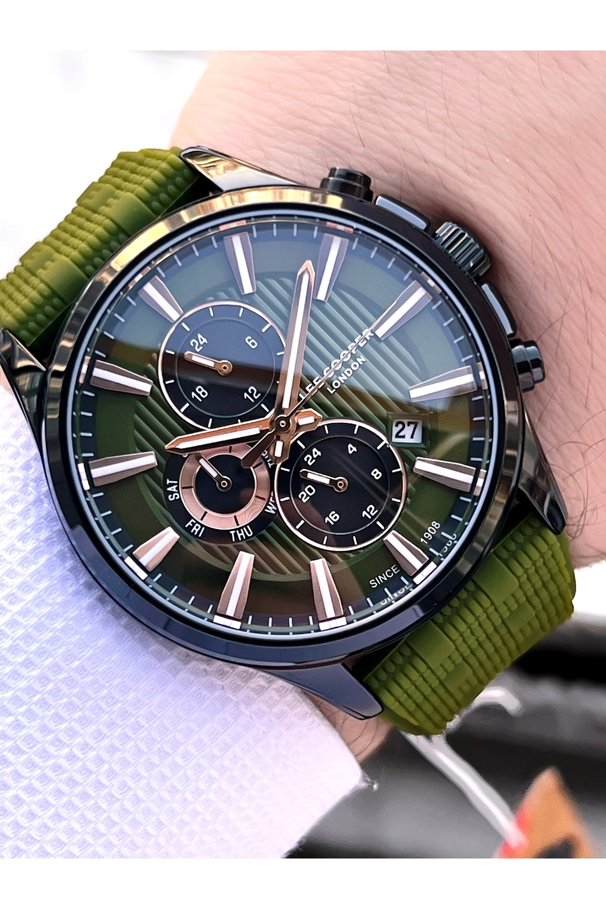 ساعت مچی مردانه با بند سیلیکونی سبز، عملکردهای داخلی، فعال، ضدآب تا ۵ اتم، مدل Active 5