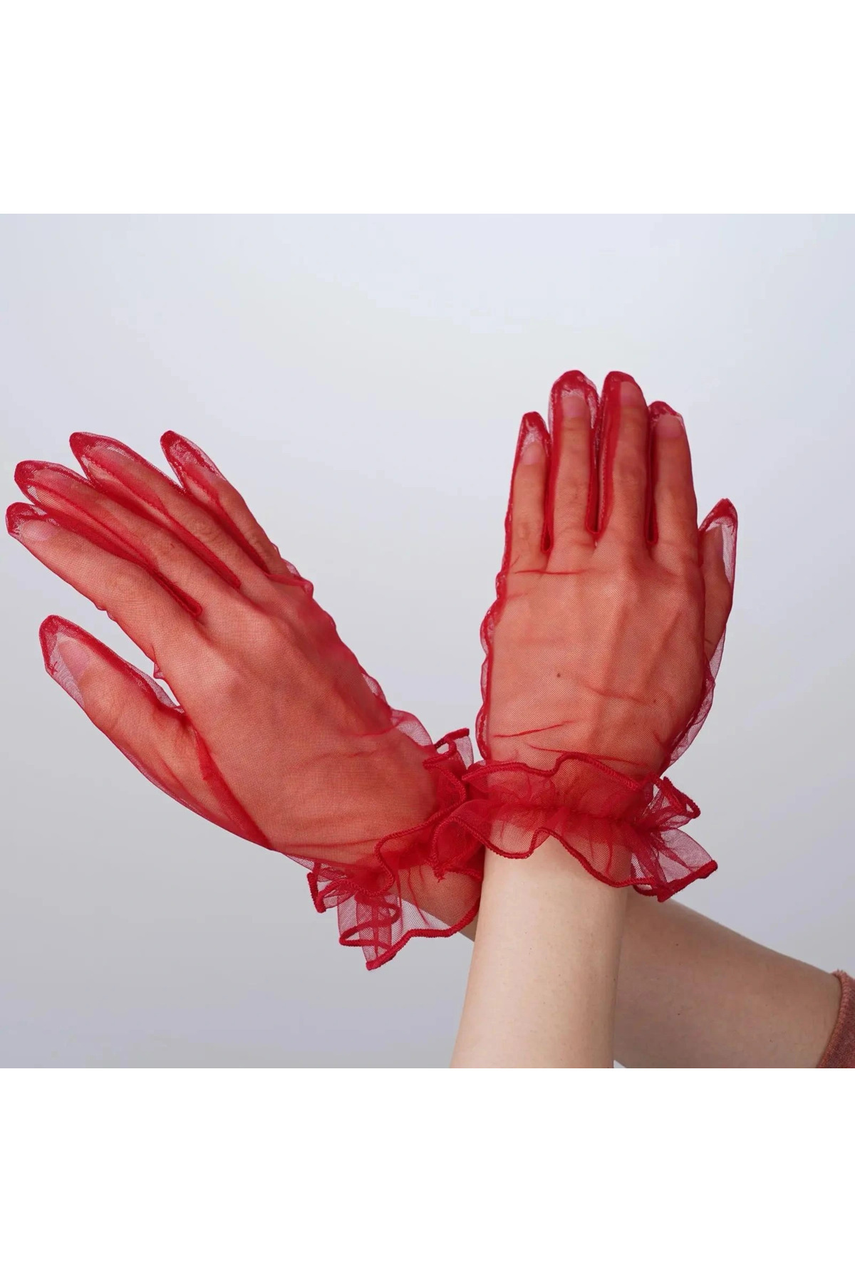 دستکش توری بزرگسالان، کوتاه، لیکرا، بنددار، رنگ قرمز