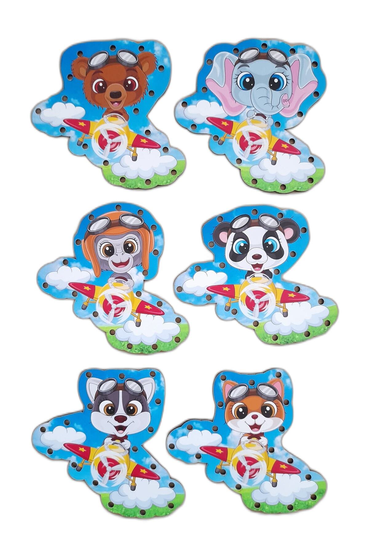 مجموعهٔ رنگارنگ چوبی برای عبور نخ از سوراخها، مناسب پیشدبستانی و تقویت مهارتهای حرکتی ظریف