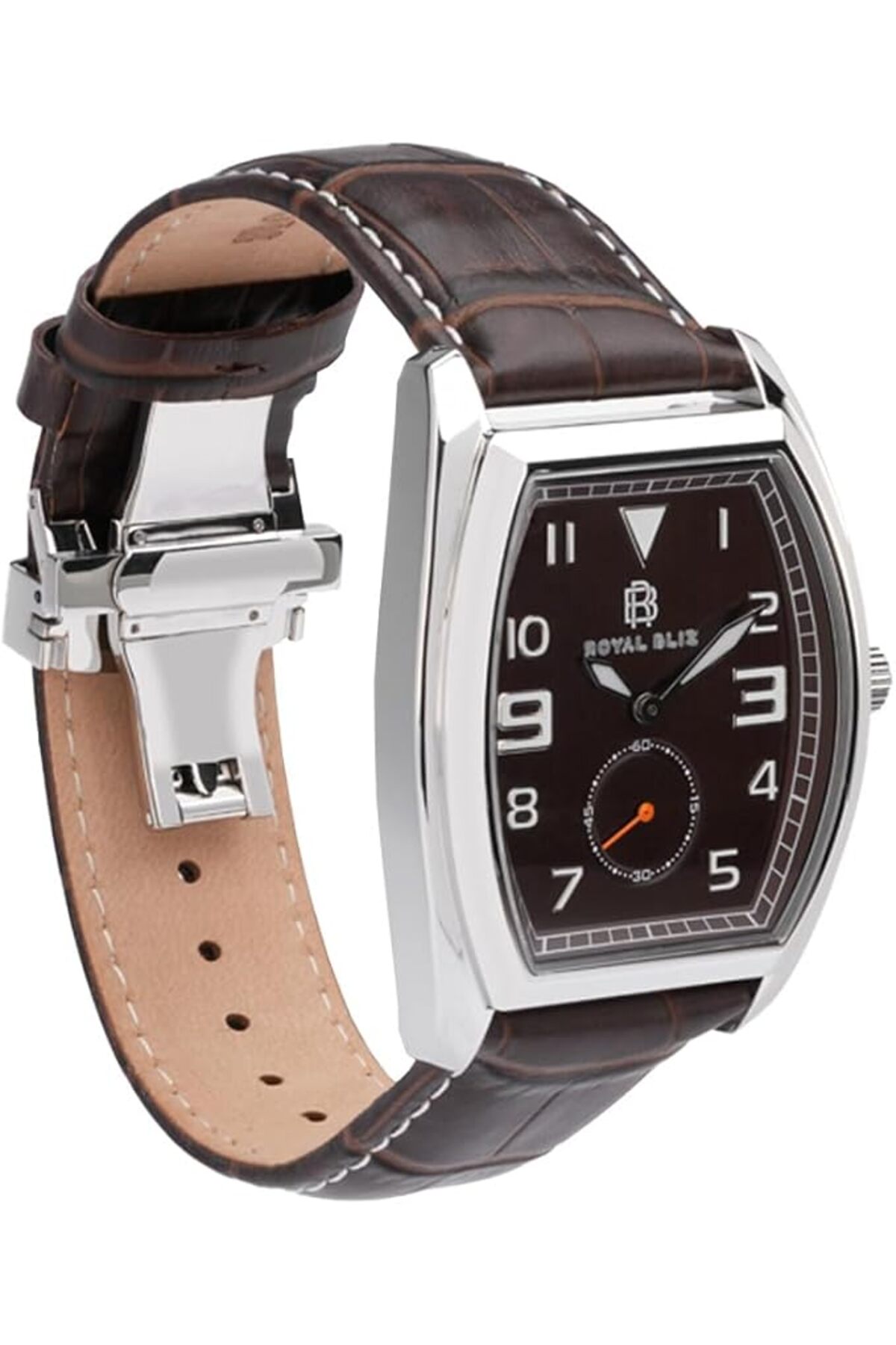 ساعت مردانه مستطیلی RB Royal Edgy | استیل 316L | کریستال یاقوتی | 100 متر (قهوهای)