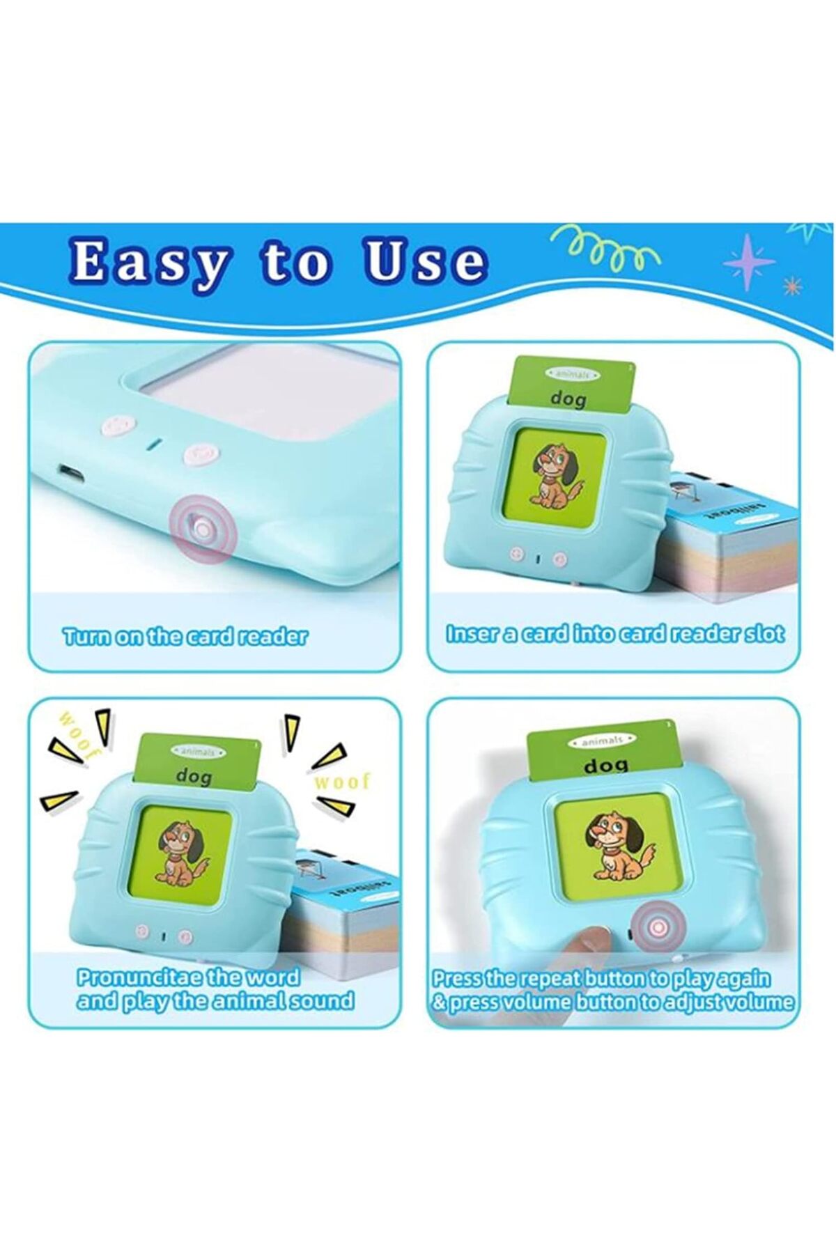 کارتهای فلش صحبتکننده، دستگاه خواندن آموزشی با ۲۲۴ واژه، اسباببازی مونتهسوری برای نوپاها