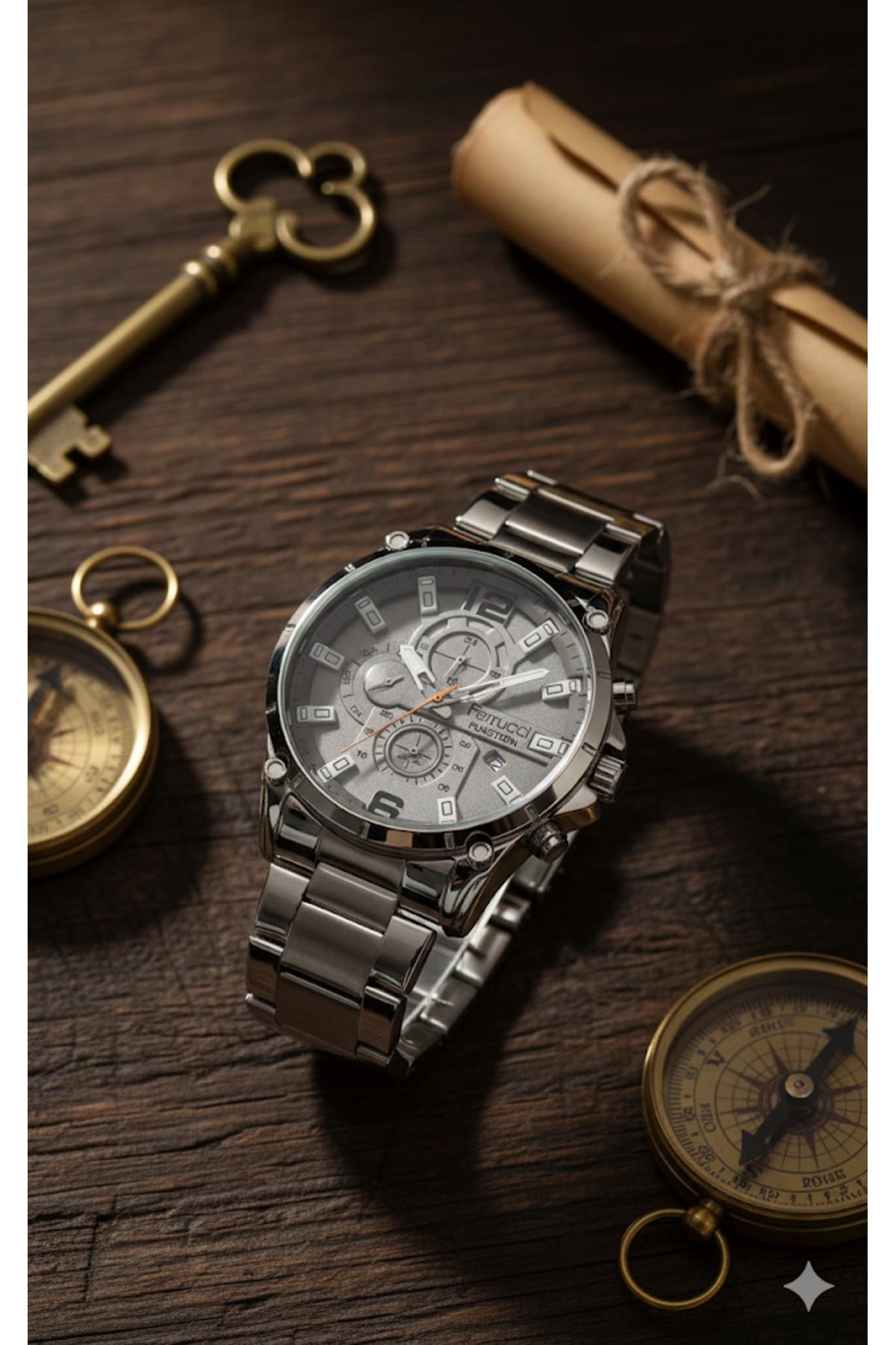 ساعت مچی مردانه نقرهای رنگ، صفحه خاکستری – بند فلزی شیک، ۲ سال گارانتی
