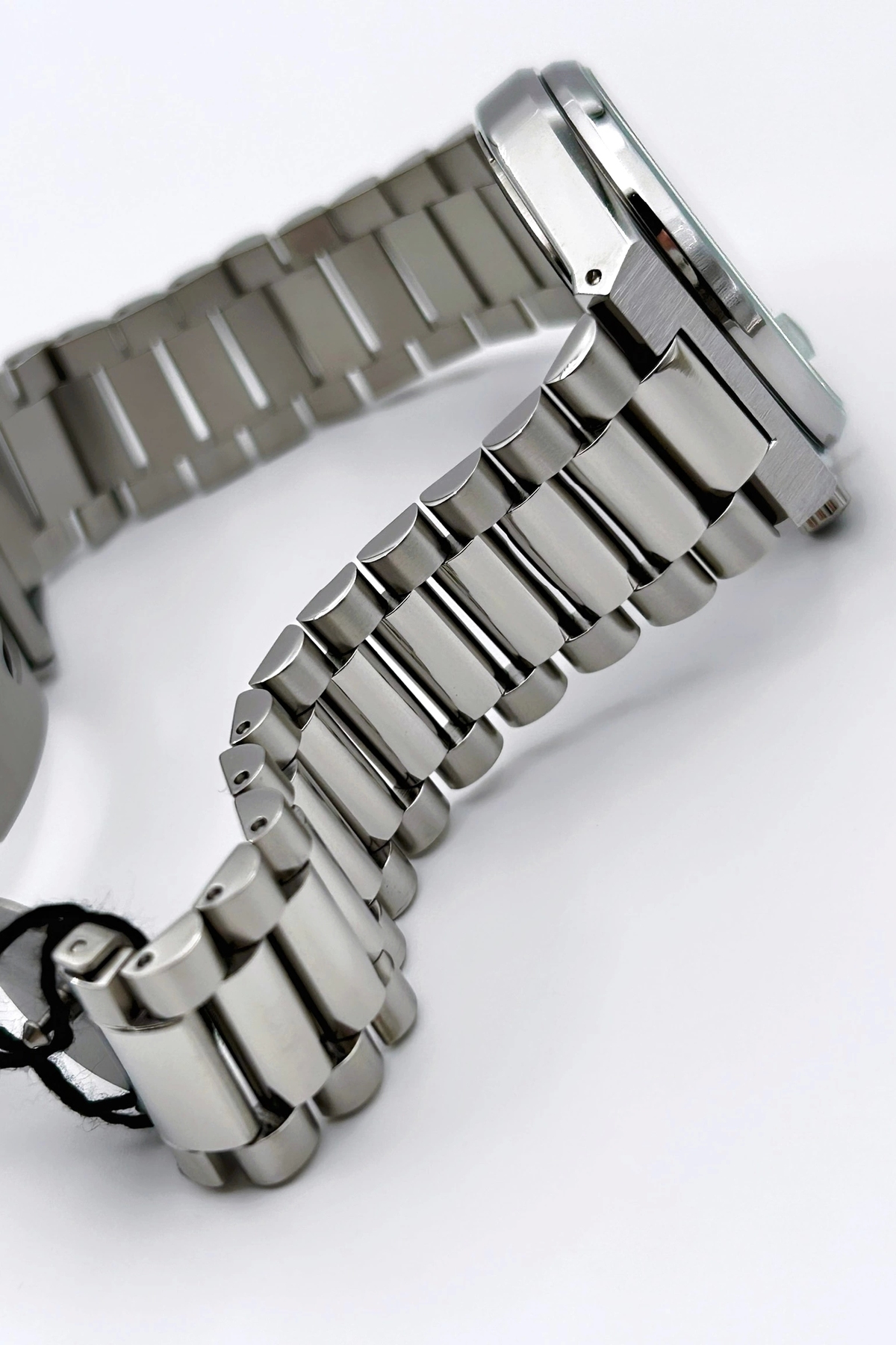 ساعت مچی مردانه نقرهای رنگ، صفحه فلزی – بند فلزی شیک، ضمانت ۲ ساله