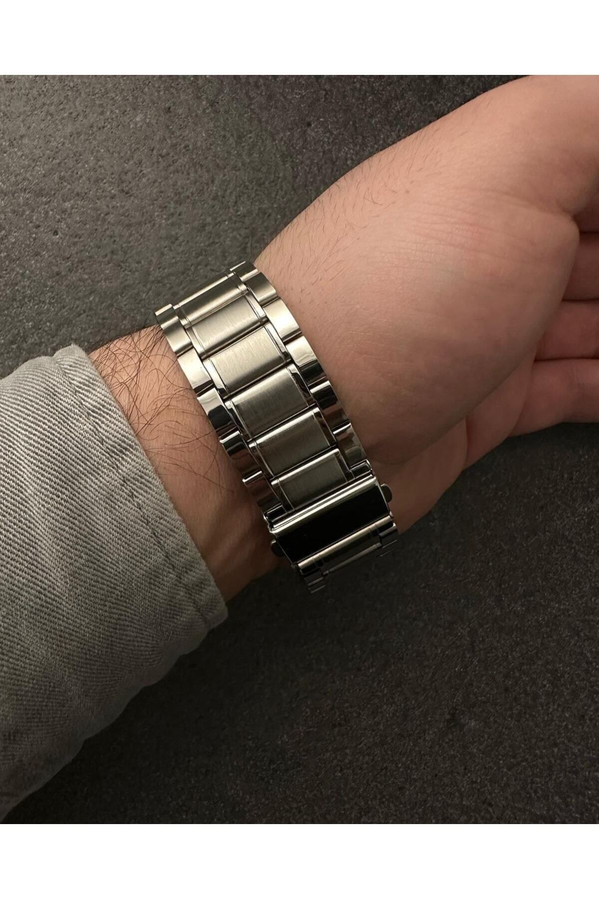 ساعت مچی مردانه نقرهای رنگ، صفحه فلزی – بند فلزی شیک، ضمانت ۲ ساله