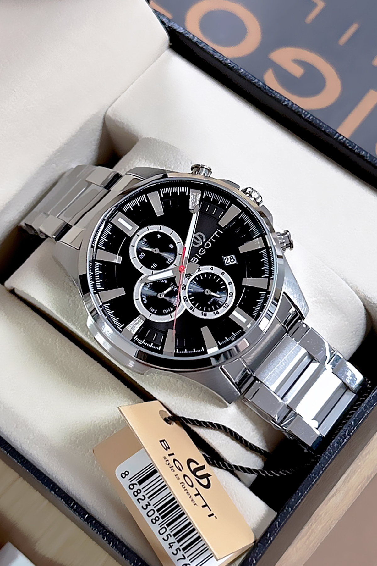 ساعت مچی مردانه ویژه در جعبه، ضدآب ۵ اتمسفر، رنگ نقرهای، بند فولادی، مدل BME2014C1