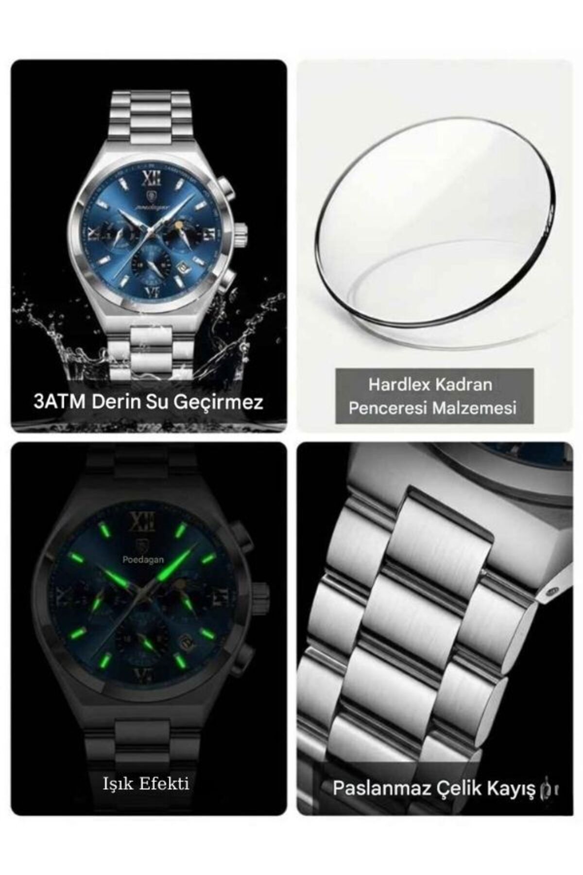 ساعت مردانه استیل ضدزنگ کوارتز ۳ اتم با نور شبانه و سری شیک