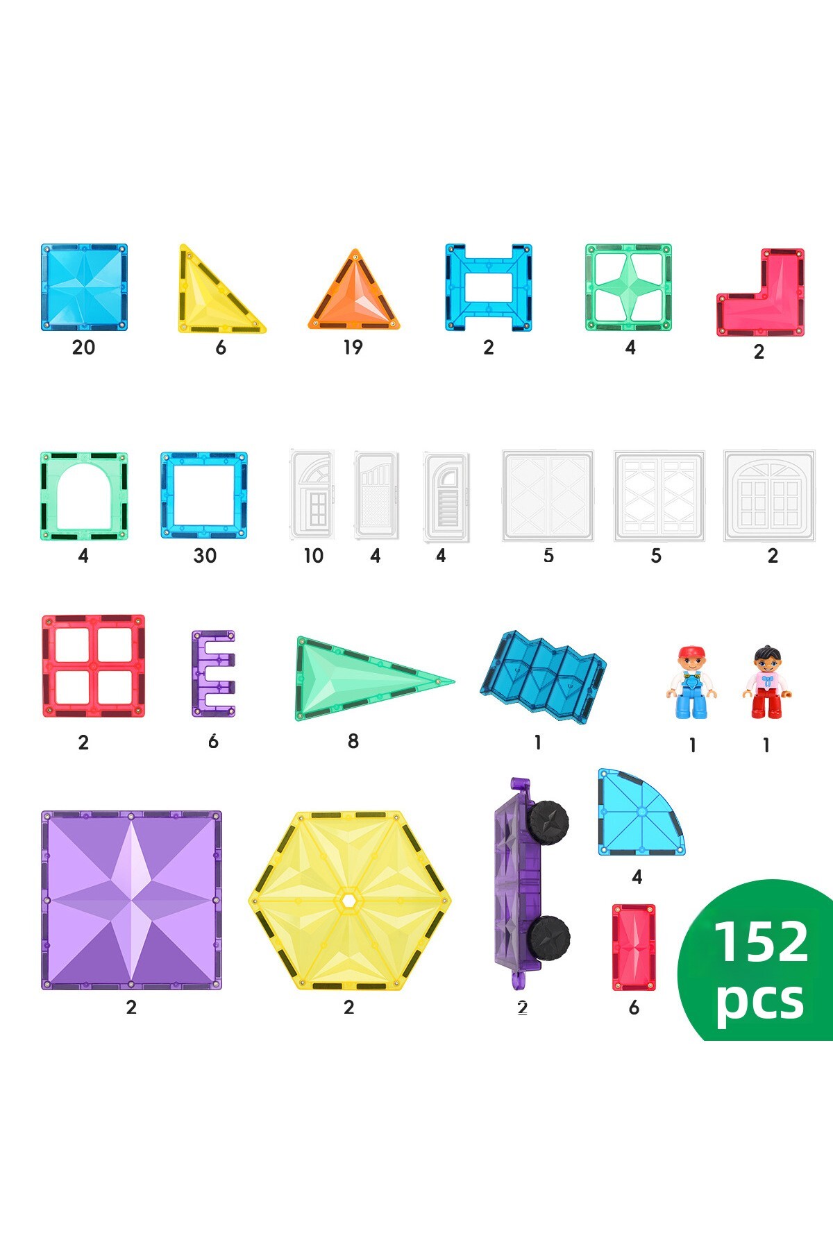 ۱۵۲ قطعه بلوکهای مغناطیسی ساختنی، ۲ کاشی مغناطیسی چرخدار و قطعات خودرو