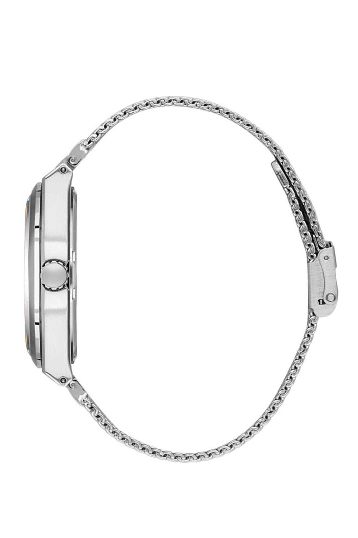 ساعت مچی مردانه فولادی تمام، ضدآب، بند زرد و سفید، صفحه کرم