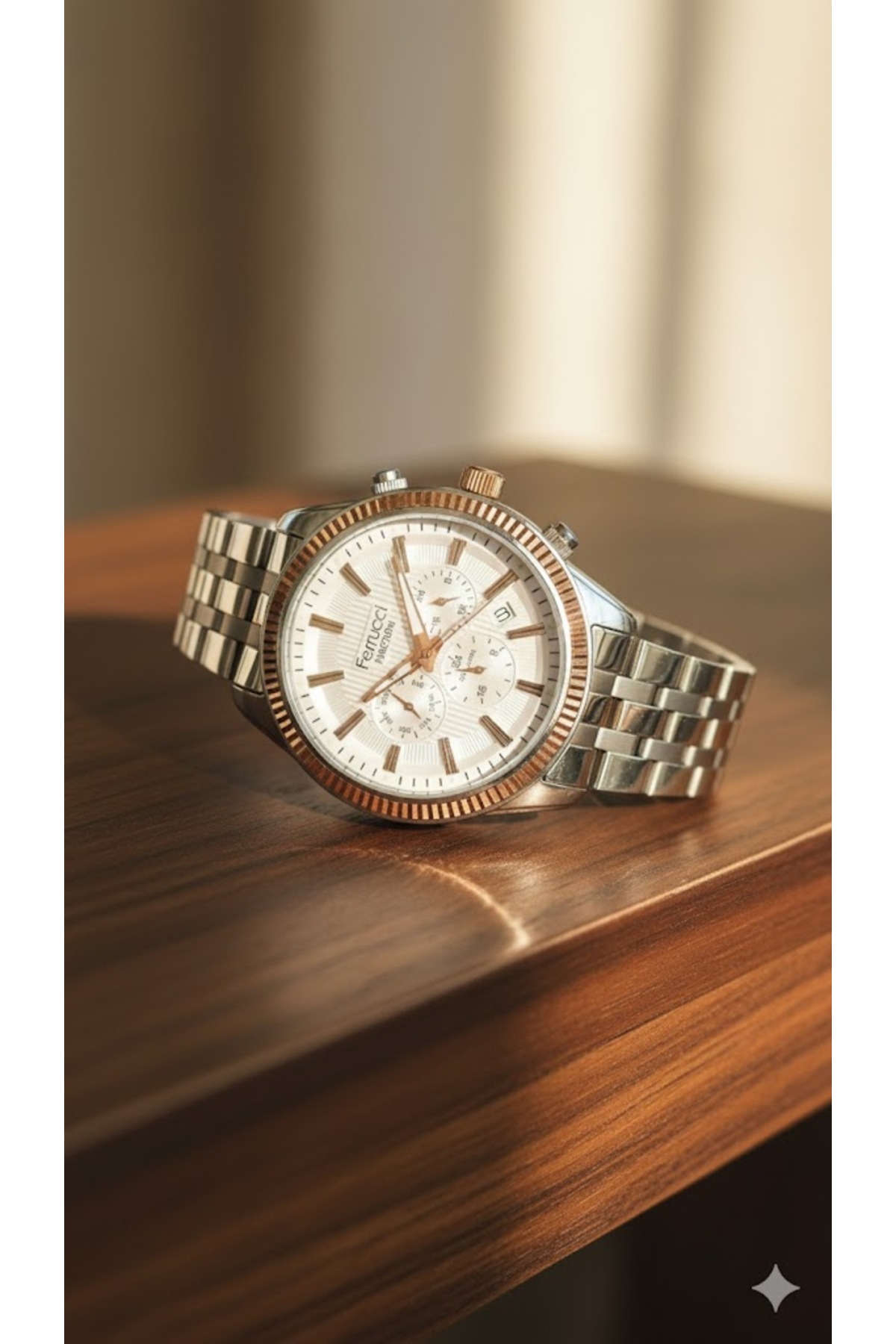 ساعت مچی مردانه طلایی و نقرهای، صفحه فلزی – بند فلزی شیک، ضمانت ۲ ساله