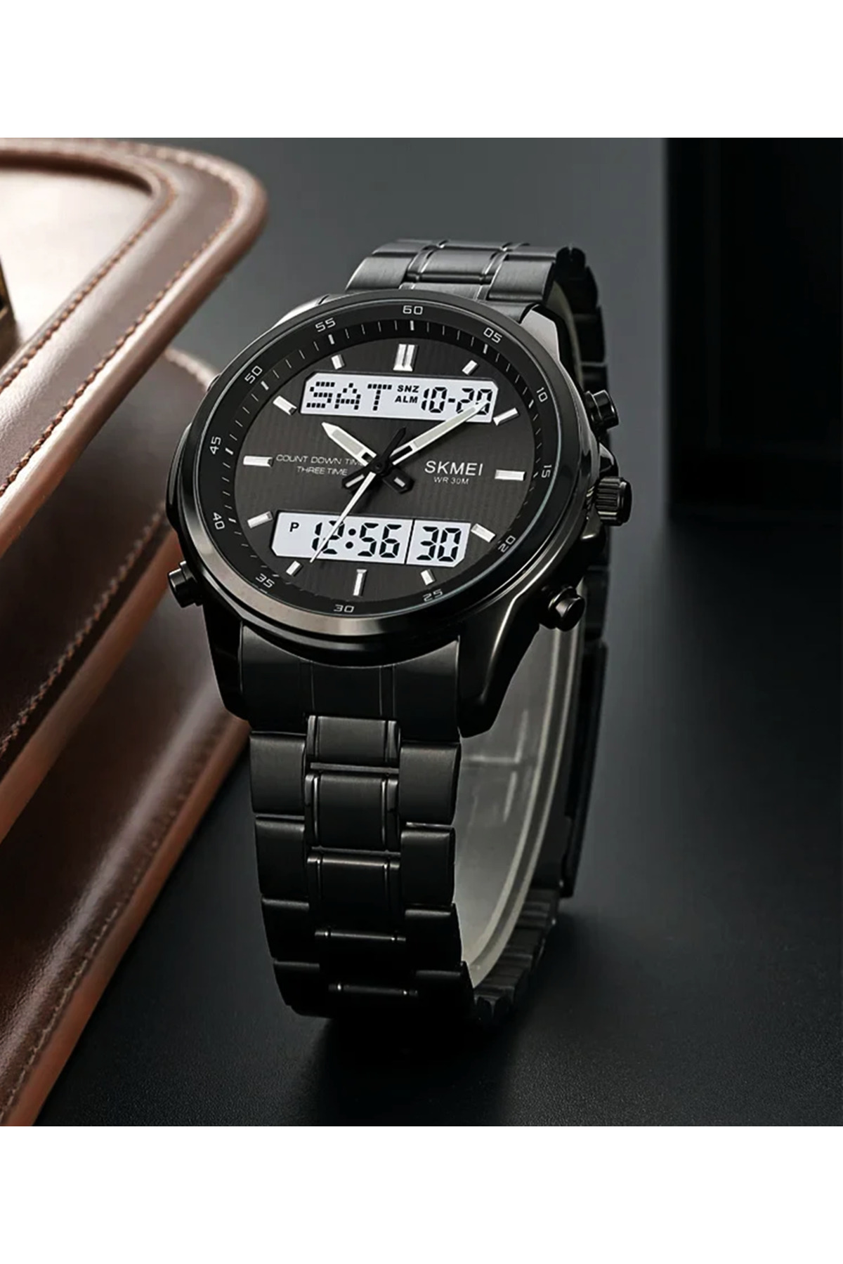 ساعت مچی مردانه شیک کلاسیک دیجیتال آنالوگ مشکی مدل 2049