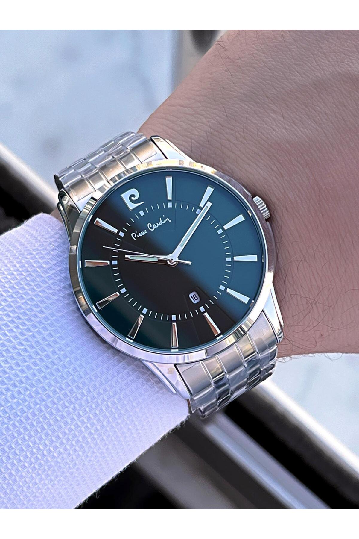 ساعت مچی مردانه نقرهای رنگ، صفحه مشکی – بند فلزی شیک، ۲ سال گارانتی