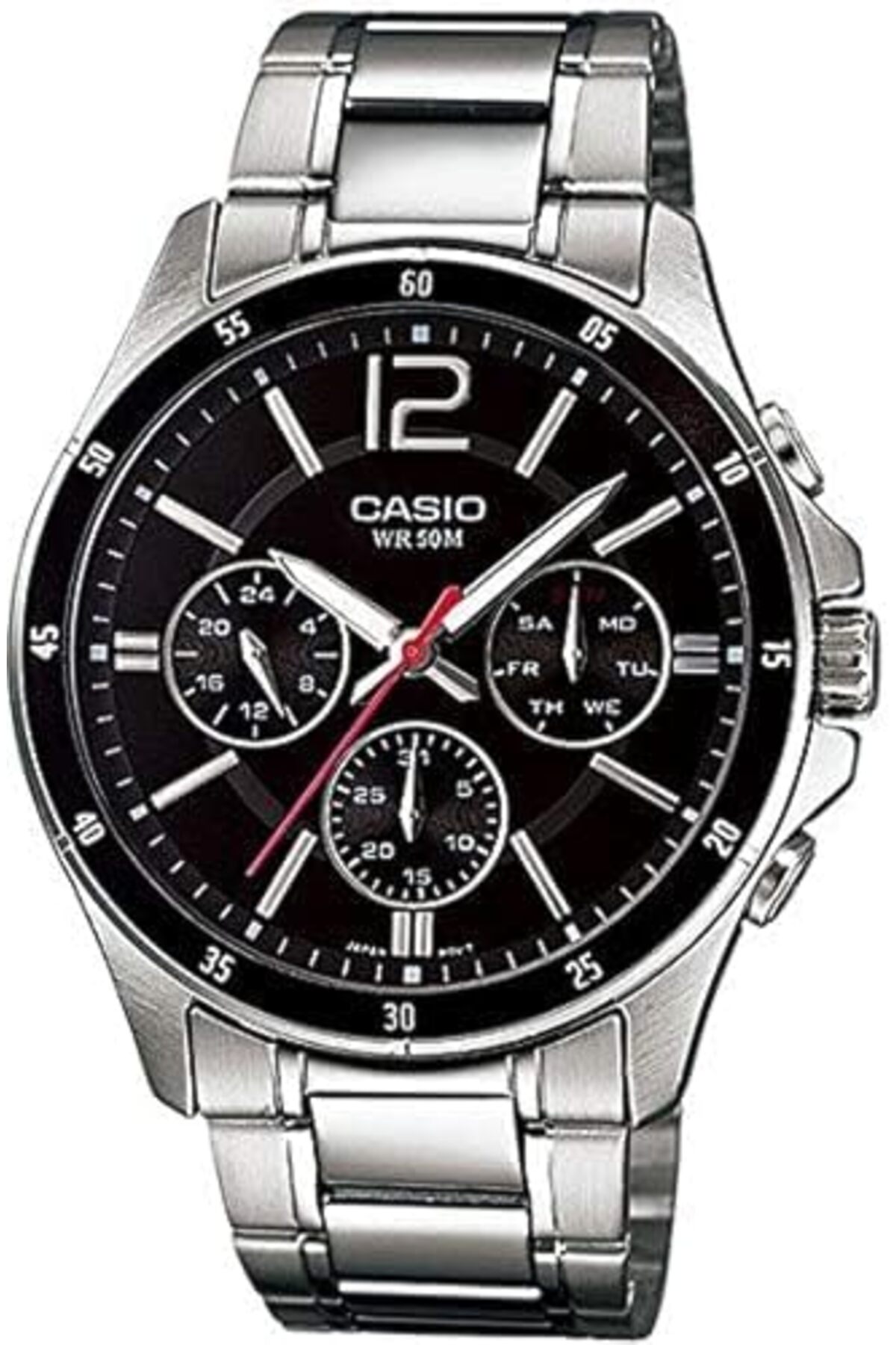 ساعت مردانه – MTP-1374D-1AVDF صفحه مشکی، بند نقرهای