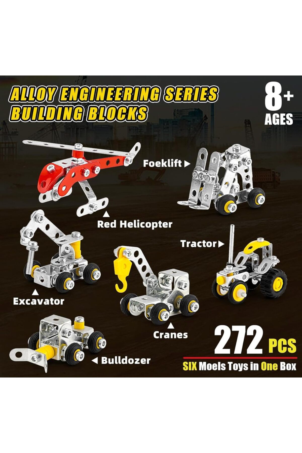 بازیهای مونتاژ و ساختوساز برای پسران، ست ۶ در ۱ اِرکتور ۲۷۲ قطعهای DIY برای پسران، مهندسی DIY…