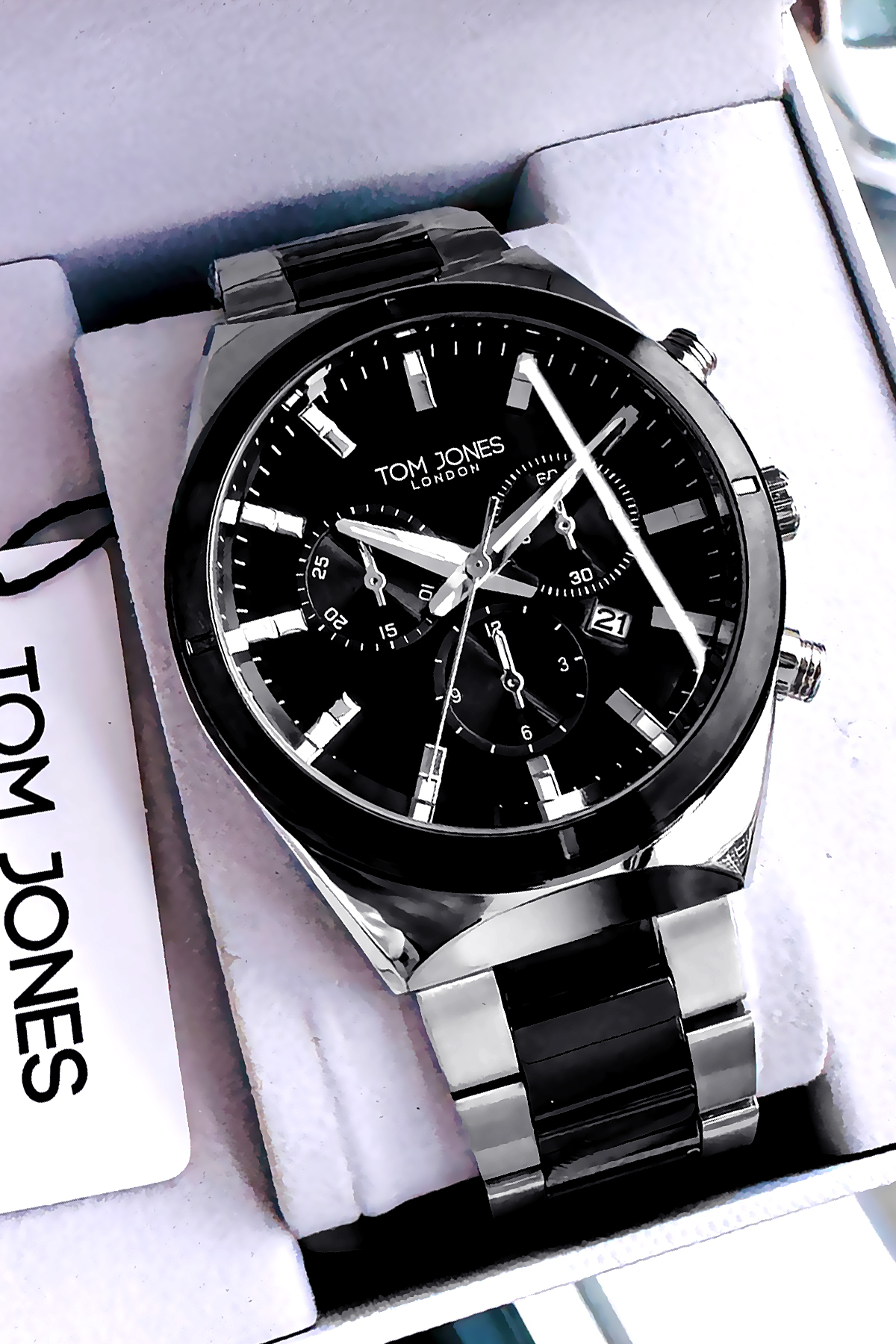 ساعت مچی مردانه اصل، رنگ مشکی-نقره ای، ۳ اتم
