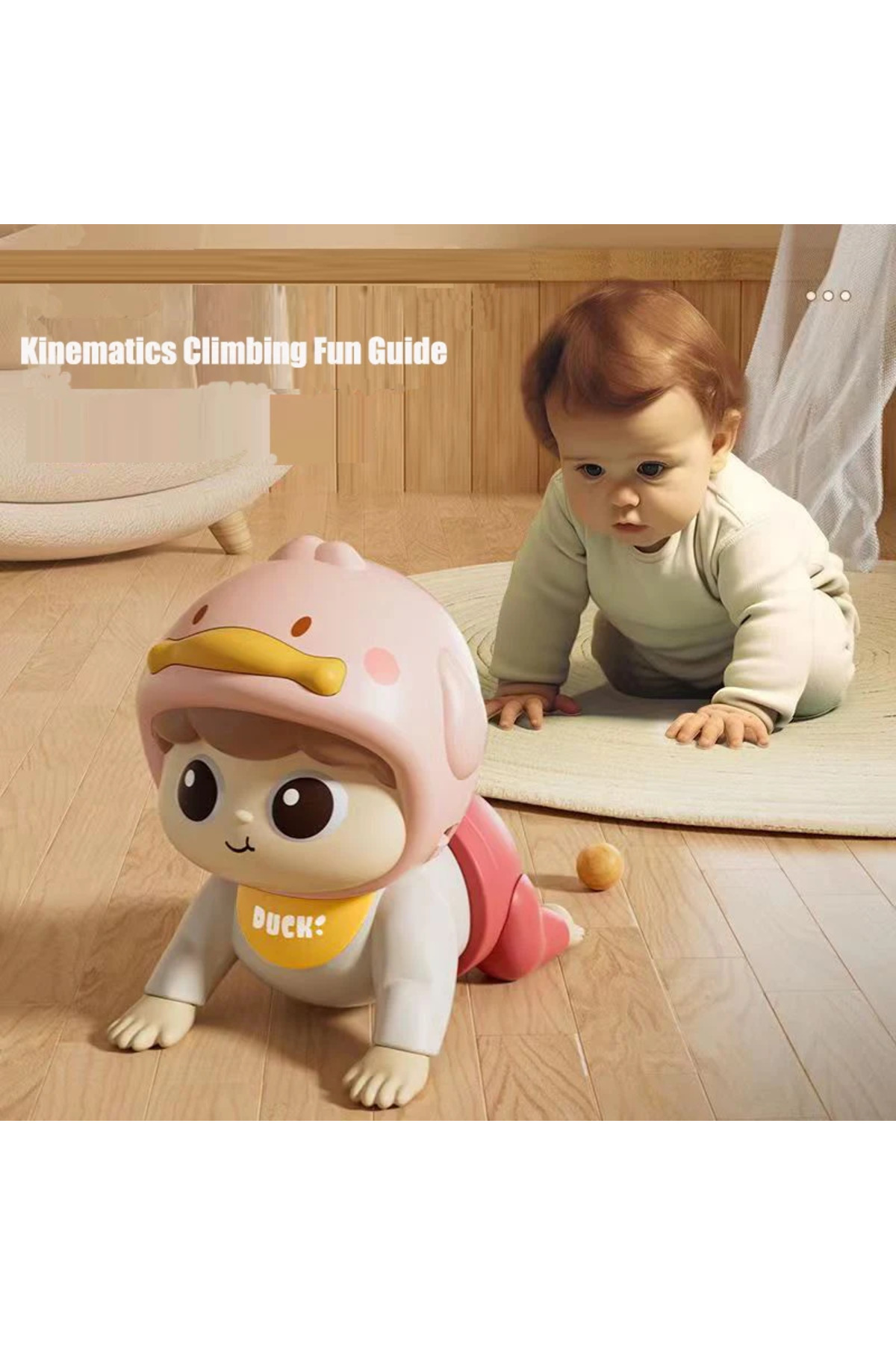 اسباببازیهای خزنده صورتی نوزاد با صدا، عروسک برقی نوزاد برای نوپا، اسباببازی آموزشی بالا رفتن