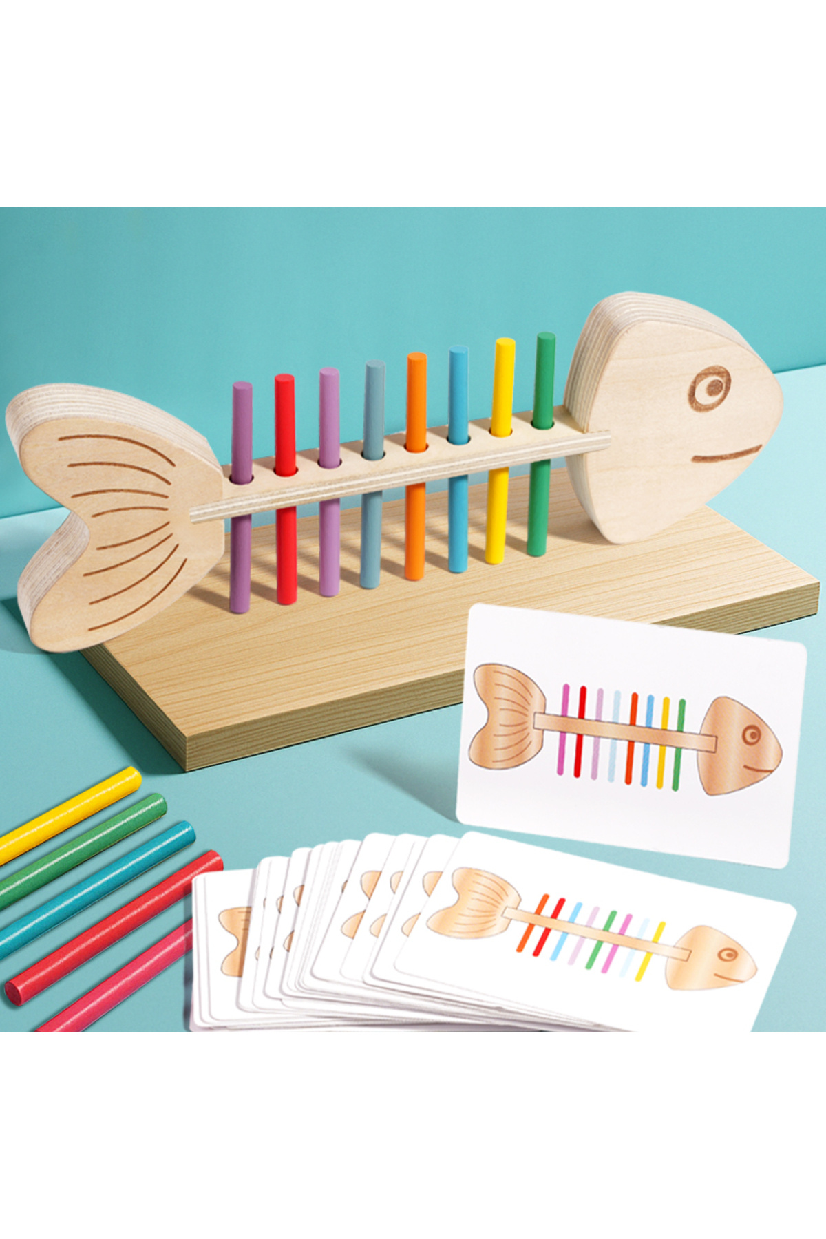 بازی استخوان ماهی، بازی مونته سوری، اسباببازیهای حسی تطبیق رنگ، چوب تعادل چوبی، بازی آموزشی دقیق، پازل