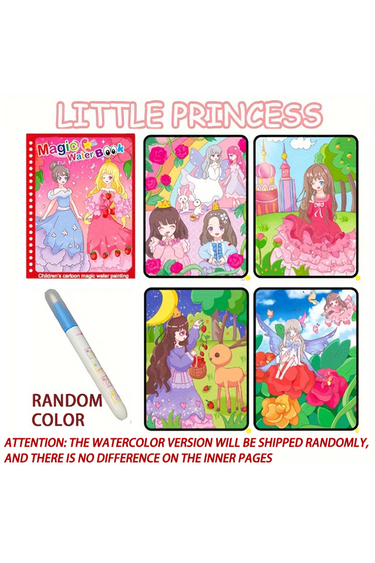 شاهدخت کوچک، کتاب جادویی نقاشی با آب، اسباببازیهای مونتهسوری، کتاب رنگآمیزی قابل استفاده مجدد، نقاشی با آب جادویی