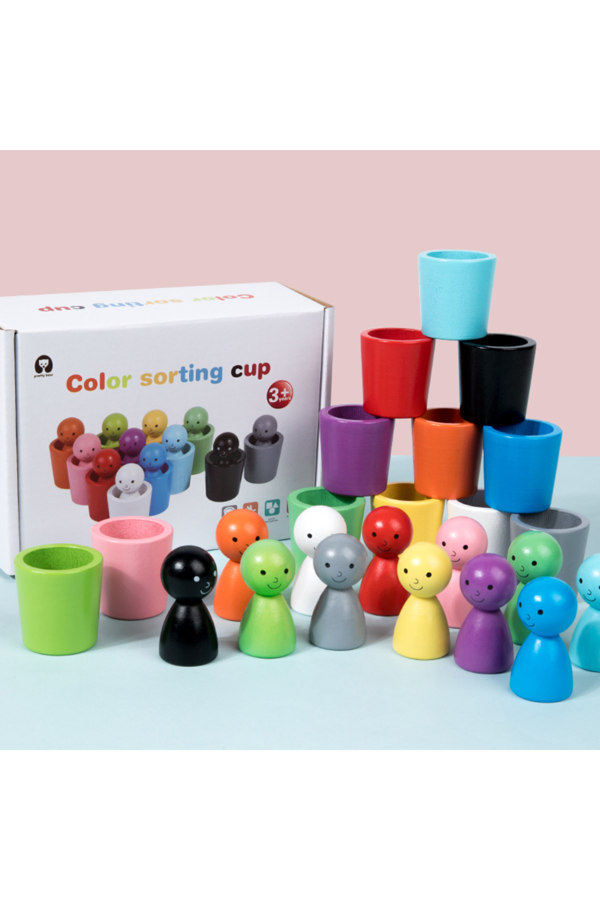 سنجاقکوبی مونتهسوری مرتبسازی رنگها، اسباببازیهای جورکردن رنگ، بازی حسی چوبی، عروسکهای چوبی در جامها برای کودکان نوپا