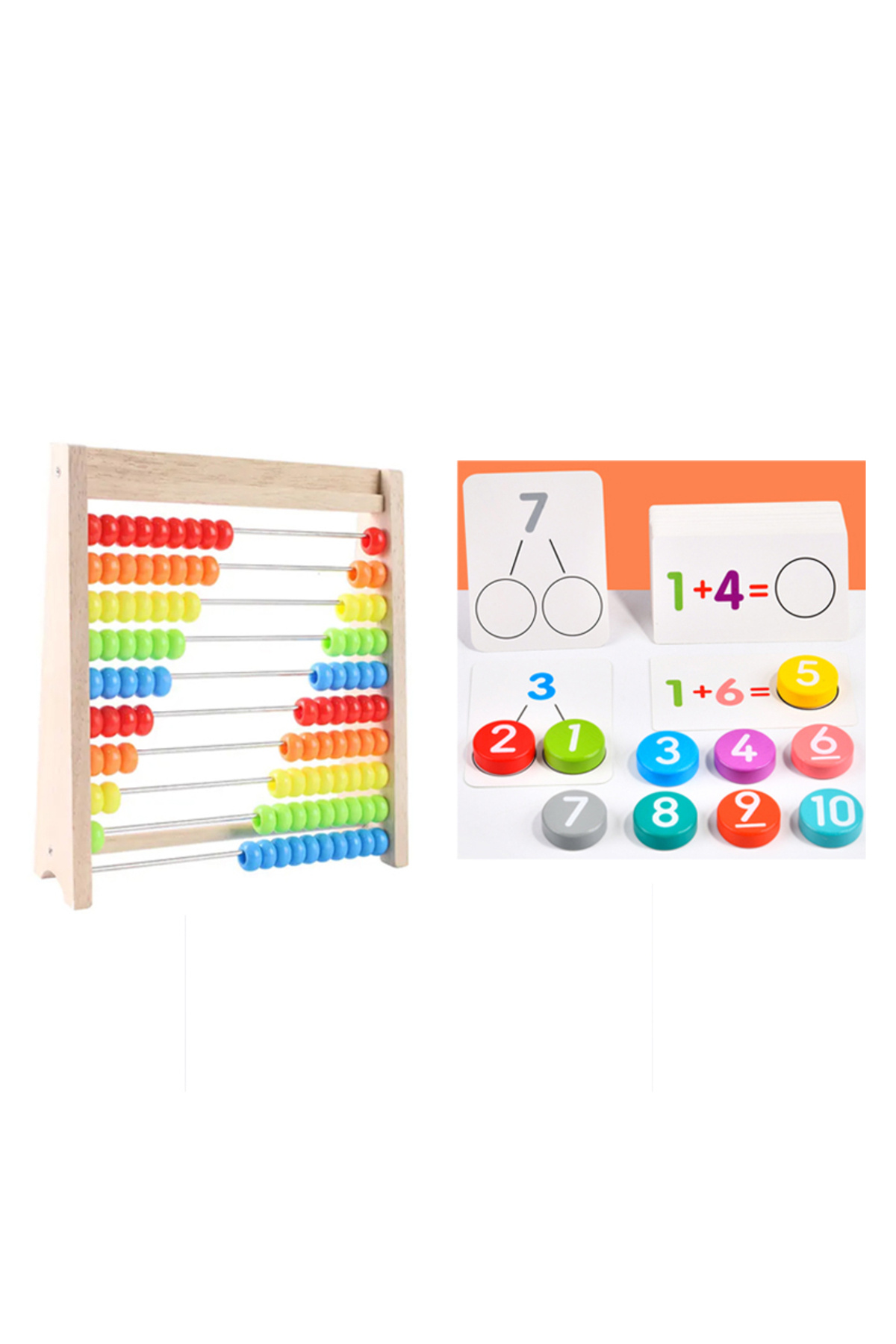 NB212C2 اسباببازی چوبی شمارش آباکوس مونتهسوری آموزش ریاضی اسباببازی کودکان مرواریدهای رنگینکمانی شمارش اضافه
