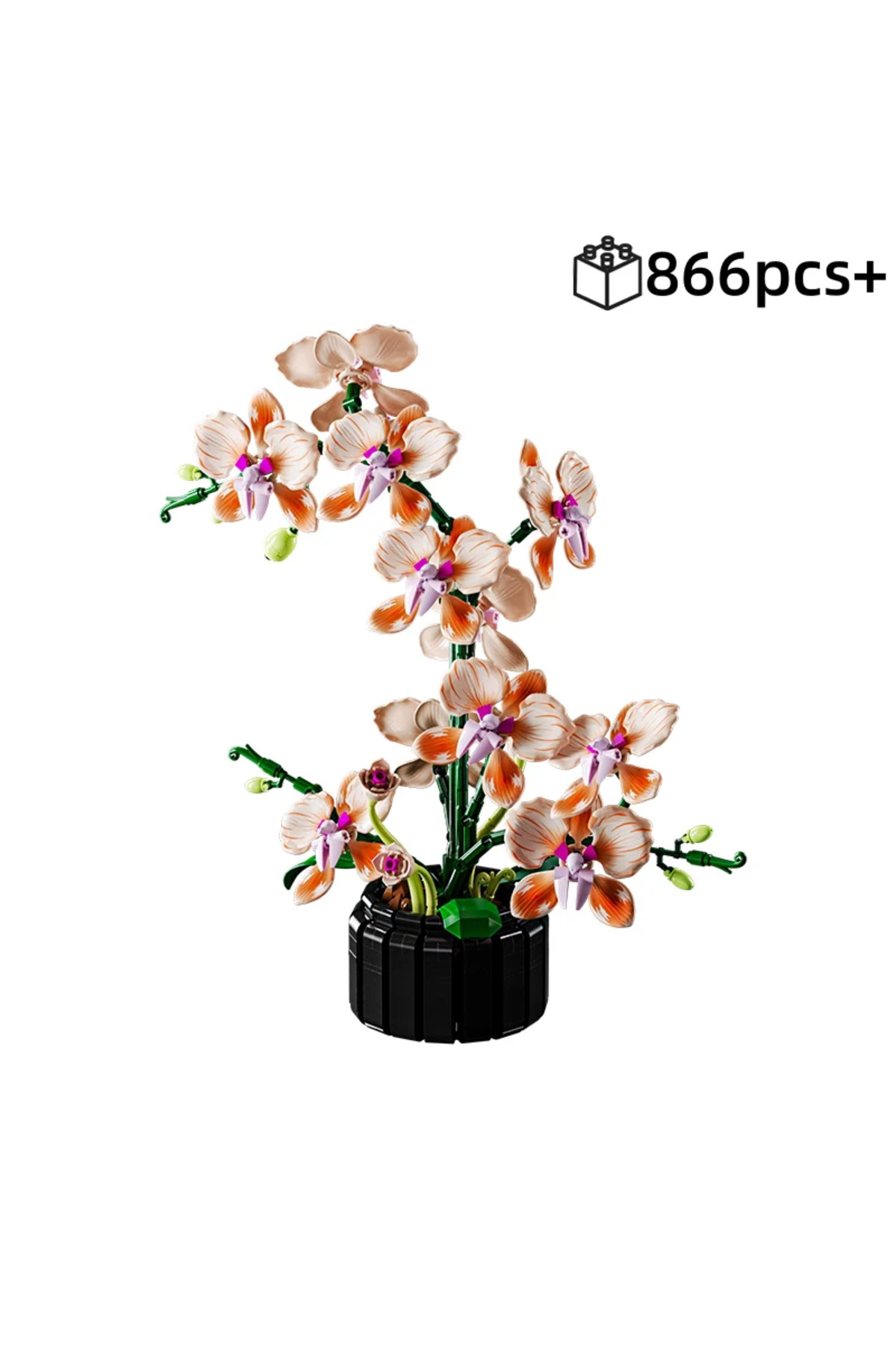 بدون جعبه ۸۶۶ تکه ۸۶۶ تکه بلوکهای ساختمانی گل ارکیده دستهگل خلاقانه دکوراسیون خانه رمانتیک بریک