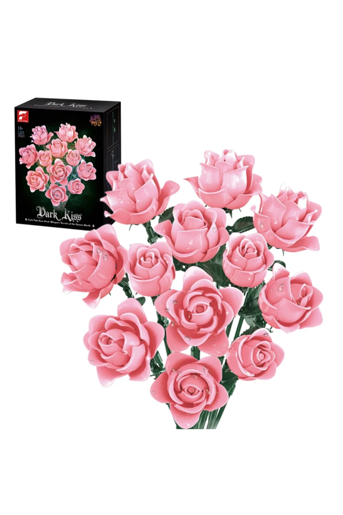 رز صورتی ۱۲، بلوکهای ساختمانی گل رز صورتی، شبیهسازی دستهگل، مدل گل، آجرهای ساختمانی، بزرگسال، عاشقانه