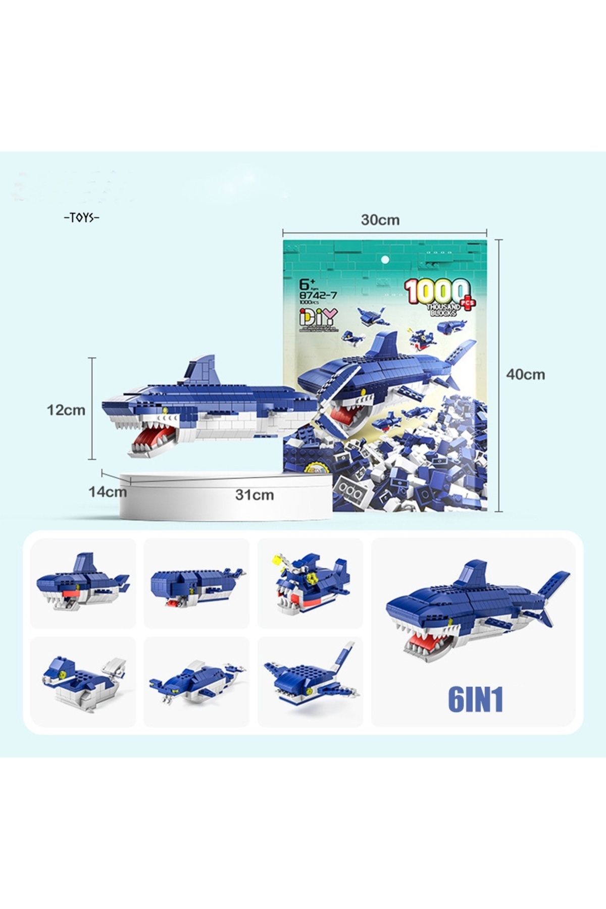 کیسه رنگی ۶ در ۱، ۱۰۰۰ عدد، بلوکهای ساختمانی ۶ در ۱ اقیانوس، کوسهها، دنیای دریا، بلوکهای ساخت دنیای زیر آب، آجرهای خلاقانه حیوانات زیر آب