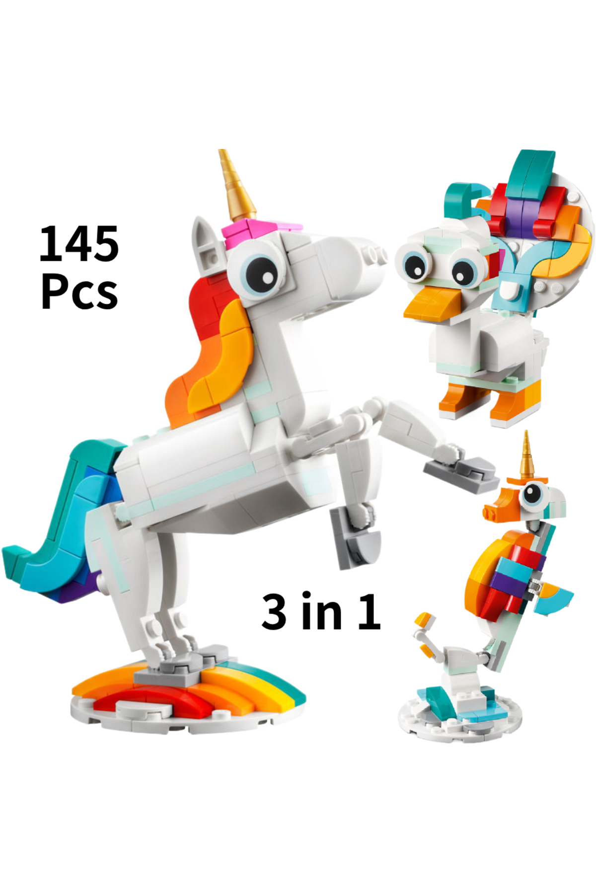 ست اسباببازی ساختنی یونیکورن ۳ در ۱ طوطی، تبدیلشونده به ۳ شکل حیوان مختلف - از طوطی رنگارنگ