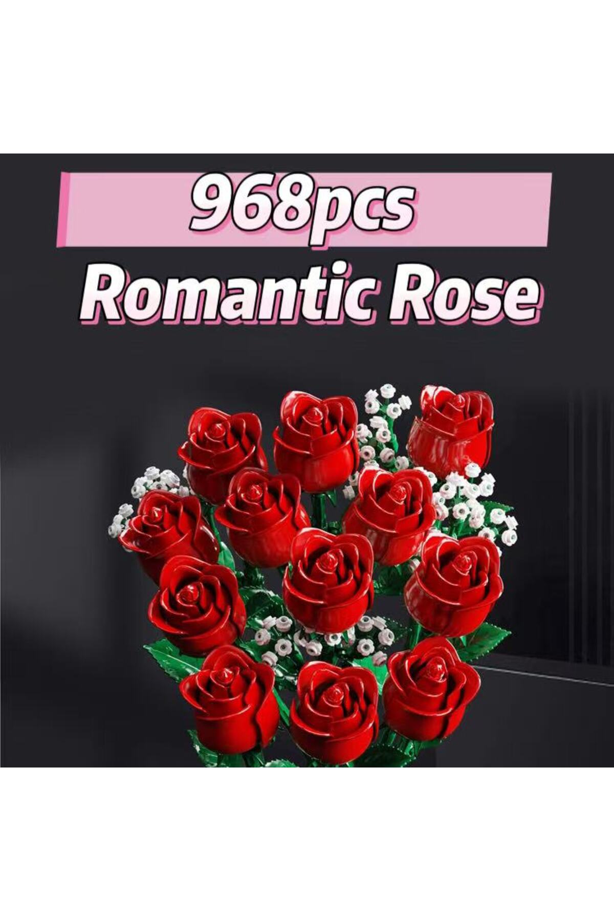 ۹۶۸ عدد بدون جعبه، مجموعه ۹۶۸ تکه بلوک ساختنی دسته گل رز رمانتیک، هدیه ولنتاین برای زنان/مردان