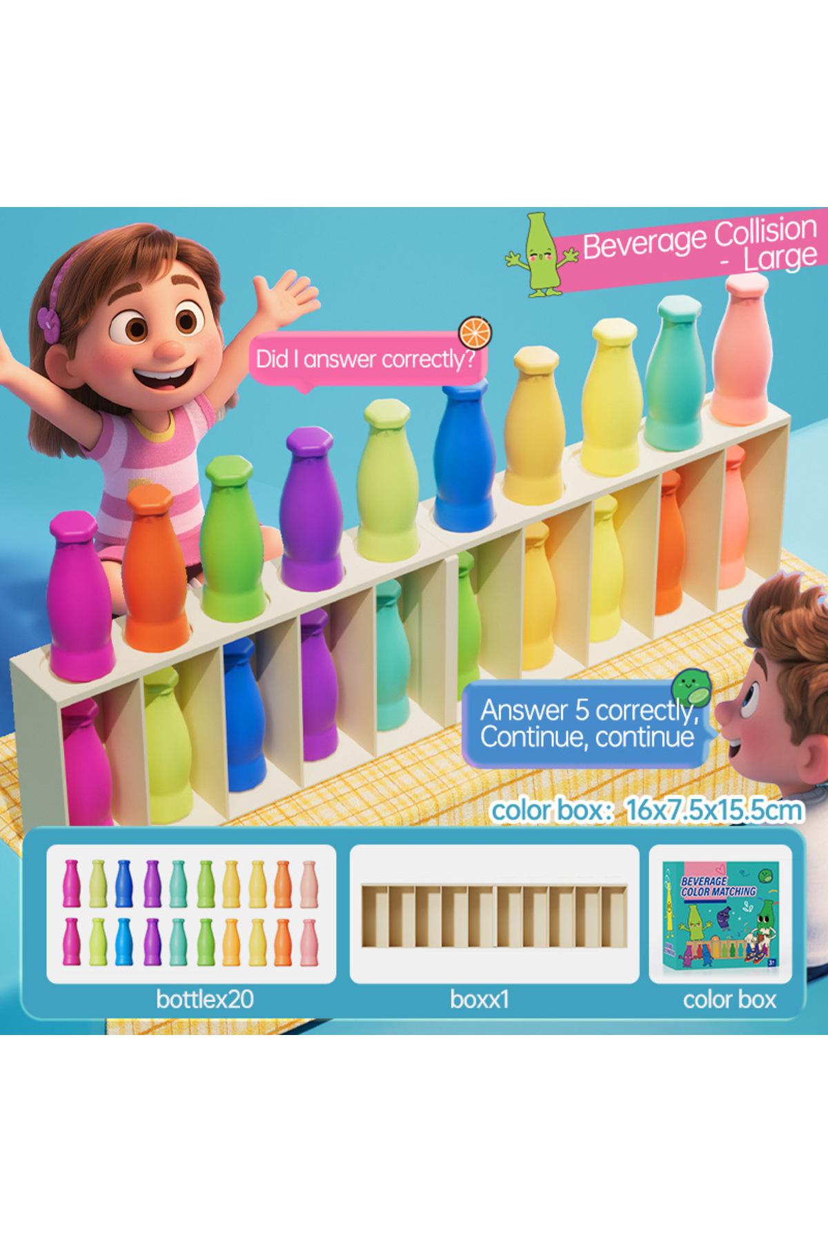 اندازه بزرگ، نوشیدنیهای سرگرمکننده کودکان، تطبیق رنگ، دوران اوایل کودکی، حدسزنی، سرگرمی، تمرین حافظه، تعاملی