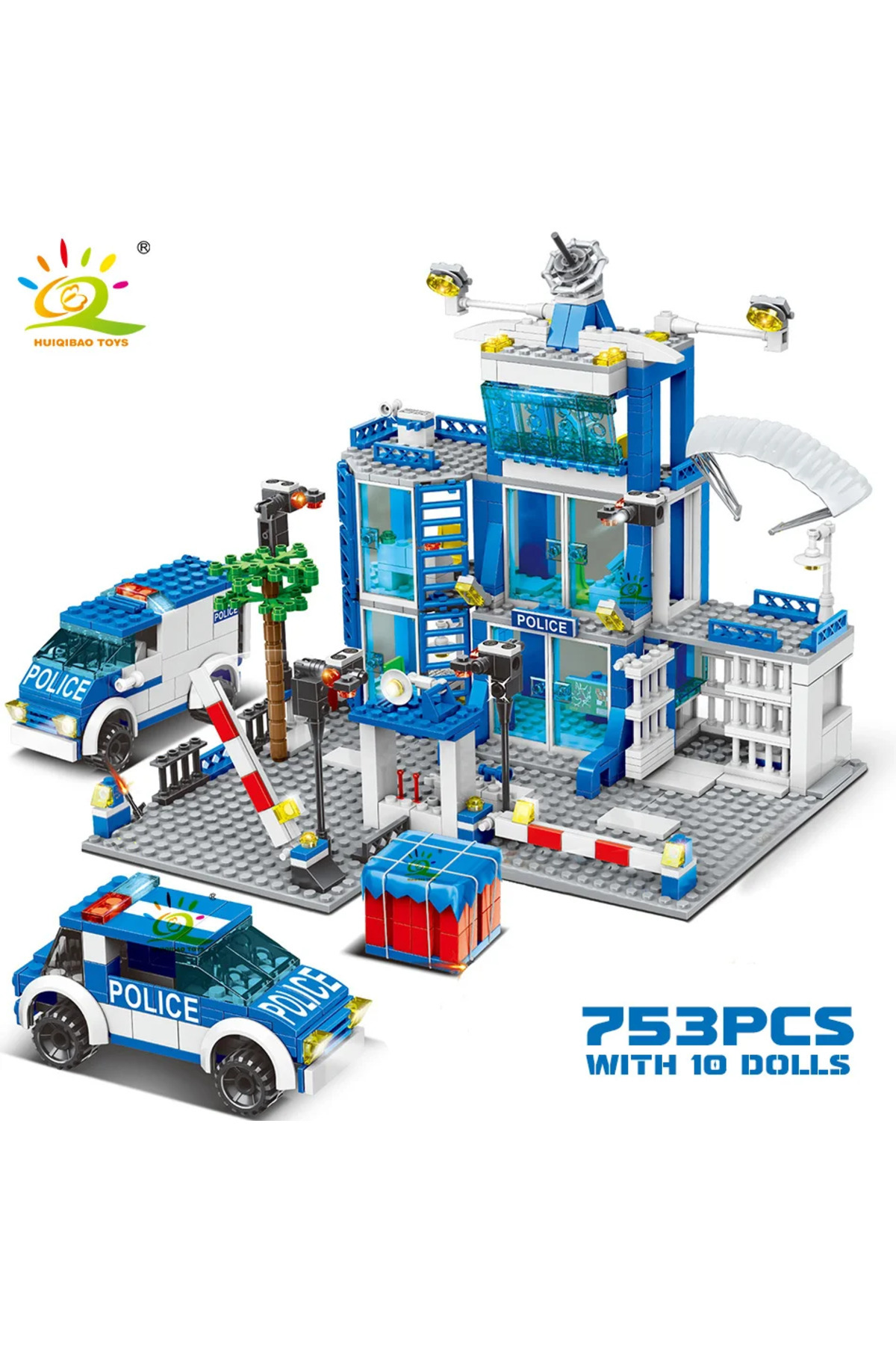 بدون جعبه HUIQIBAO مجموعه ۷۵۳ تکه بلوکهای ساختمانی ایستگاه پلیس شهری، فیگورهای ماشین DIY برای پسران، بلوکهای آموزشی