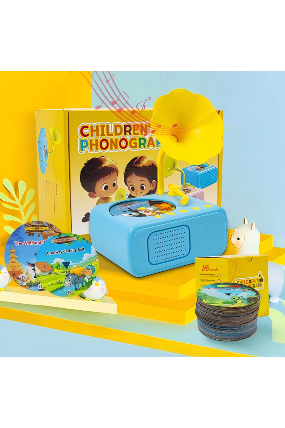 ماشین قصهگویی فونوگراف کودکان سبک جدید آبی روشن برای بچهها با ۹۶ کارت - Early C