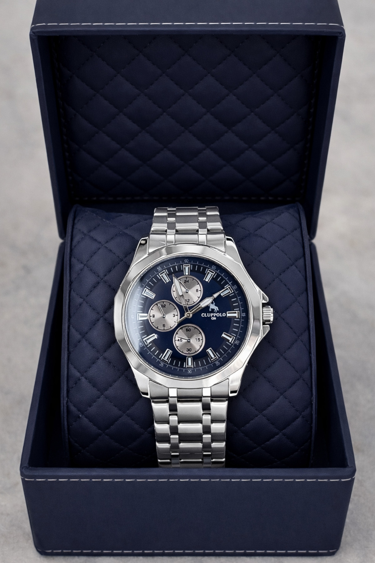 ساعت مچی مردانه چهارخانه با تقویم دوگانه گیرهای، رنگ نقرهای، مدل PL-0960E5X